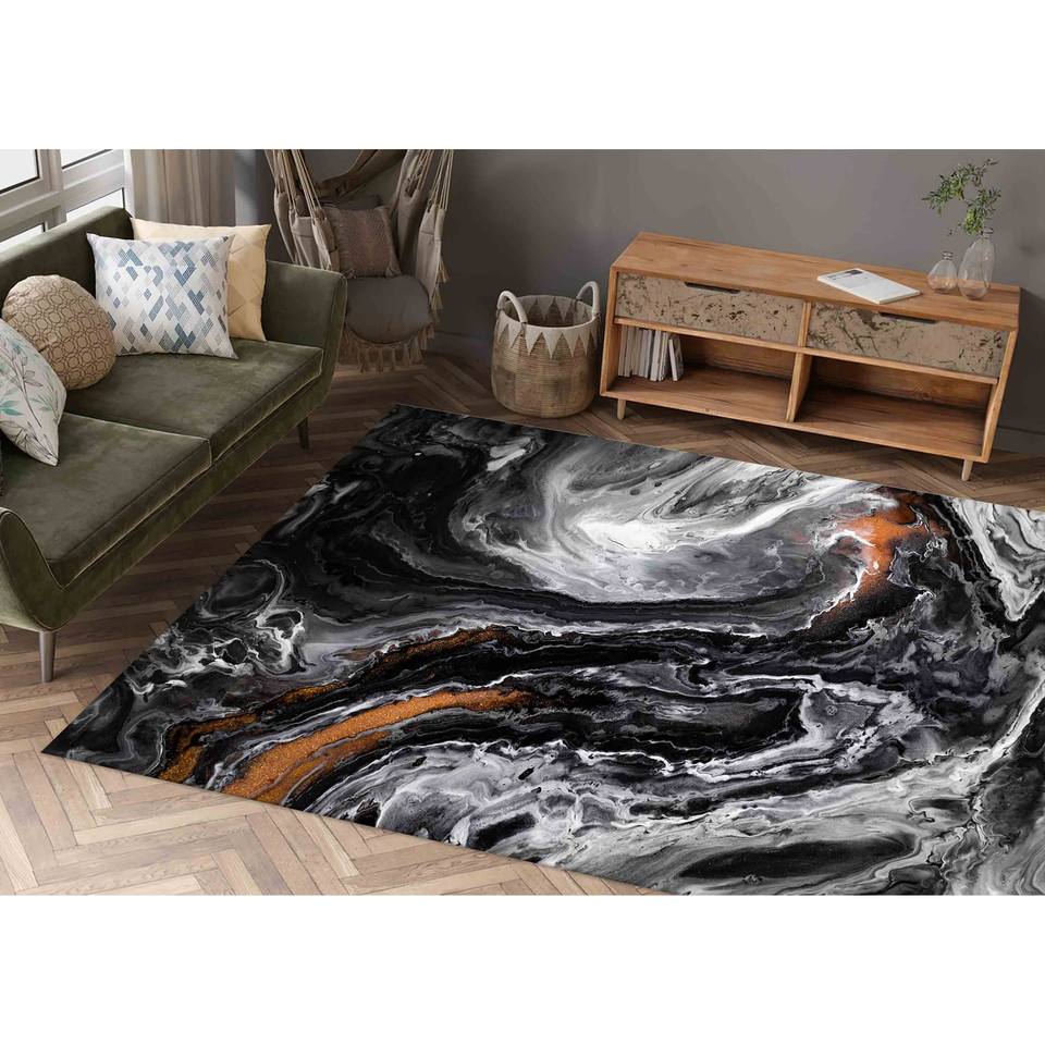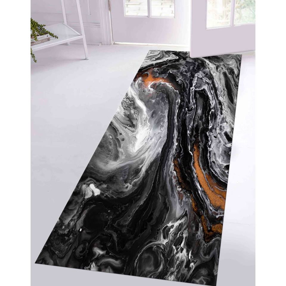 Alfombra Tradicional Negra de Lana Chenille con Diseño de Patchwork, Ecológica, con Base de Látex, para Comedor