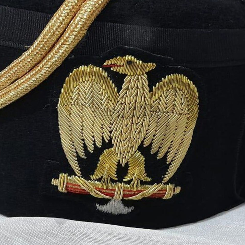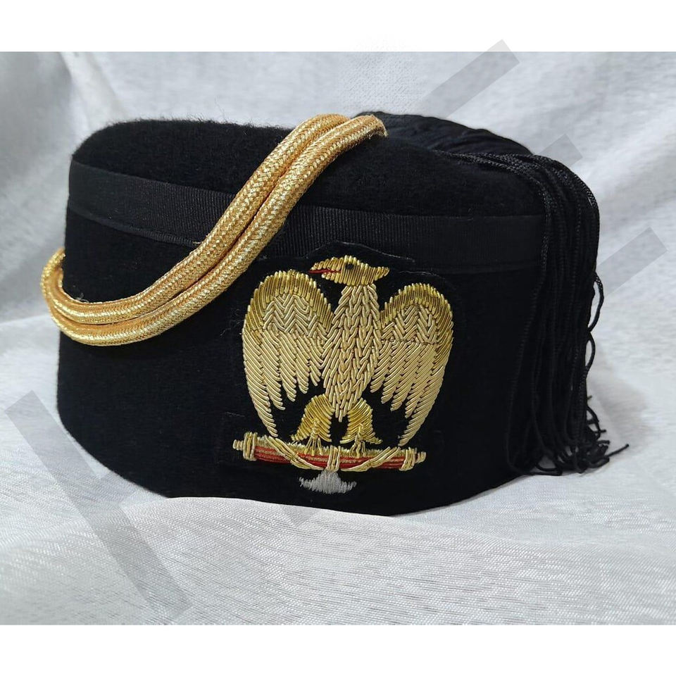 Sombrero Masónico Negro de Grado 32 del Rito Escocés con Bordado de Águila de Dos Cabezas y Borla Dorada