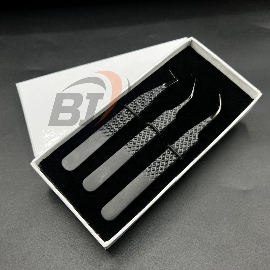 Pinzas de extensión de pestañas mate negras con punta de plasma Agarre óptimo de acero inoxidable sostenible para extensiones de pestañas