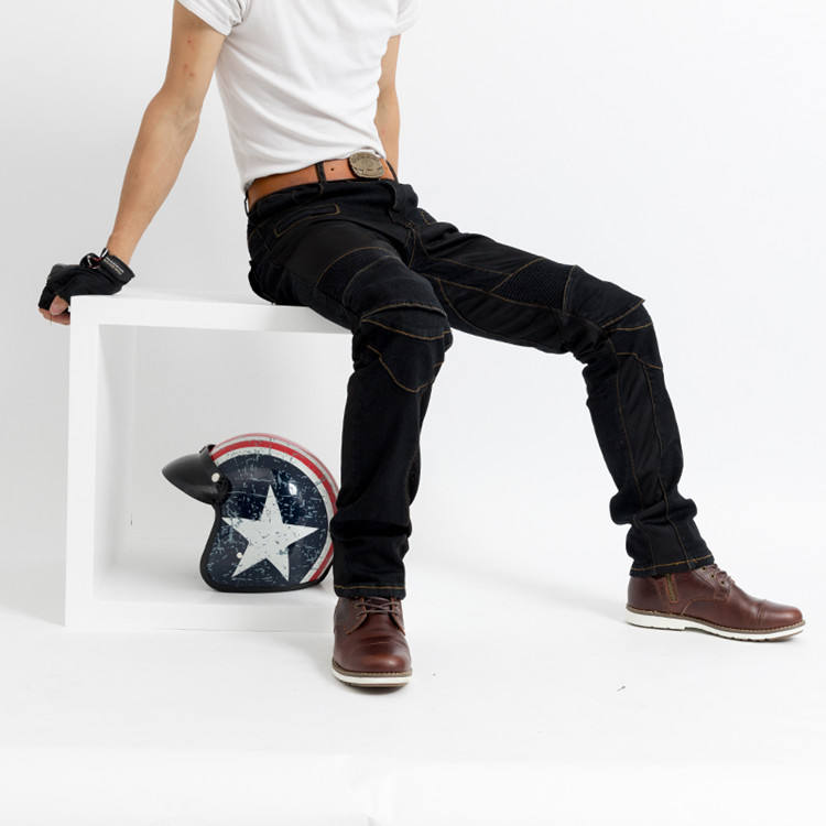 Pantalones Vaqueros de Motociclista para Hombre, Negros, de Alta Calidad, para Todas las Estaciones, de Poliéster/Algodón, con Protectores de Rodilla Extraíbles, Transpirables y de Secado Rápido