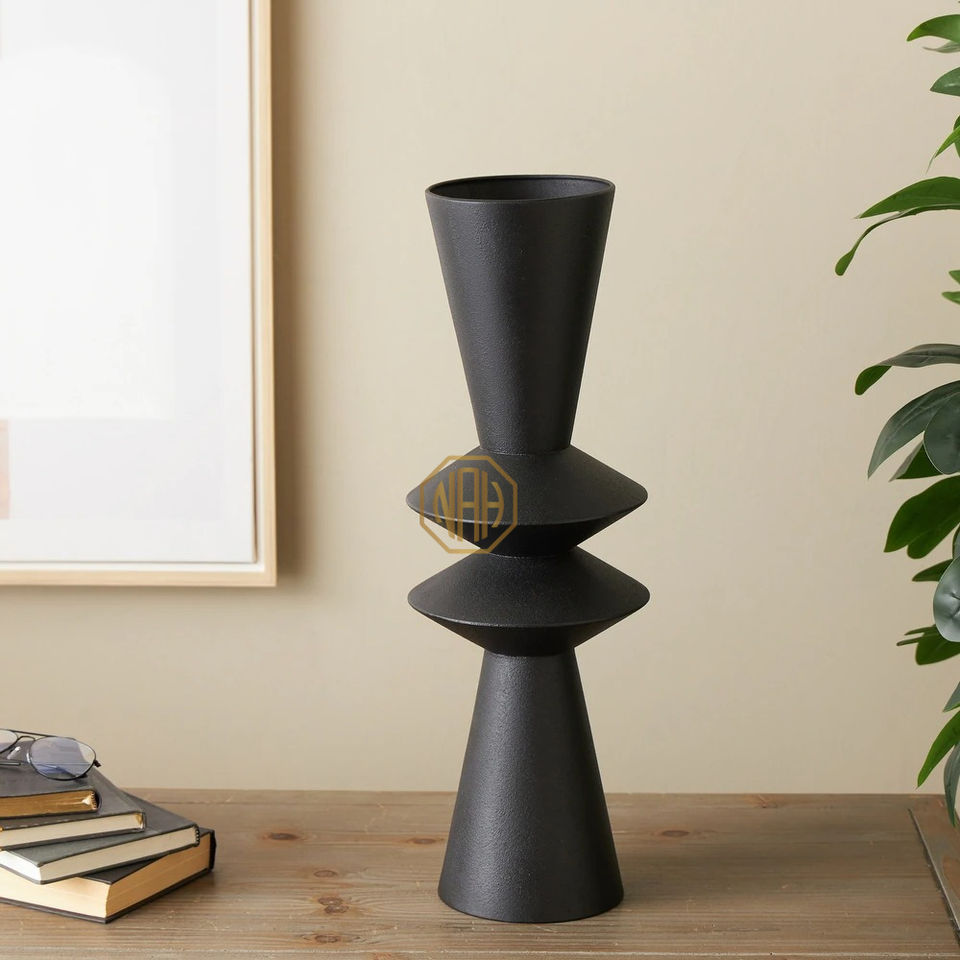 Jarrón decorativo acanalado Art Deco de Metal negro, diseño Vintage moderno, maceta alta, hogar, Hotel, boda, proveedor de exportación al por mayor