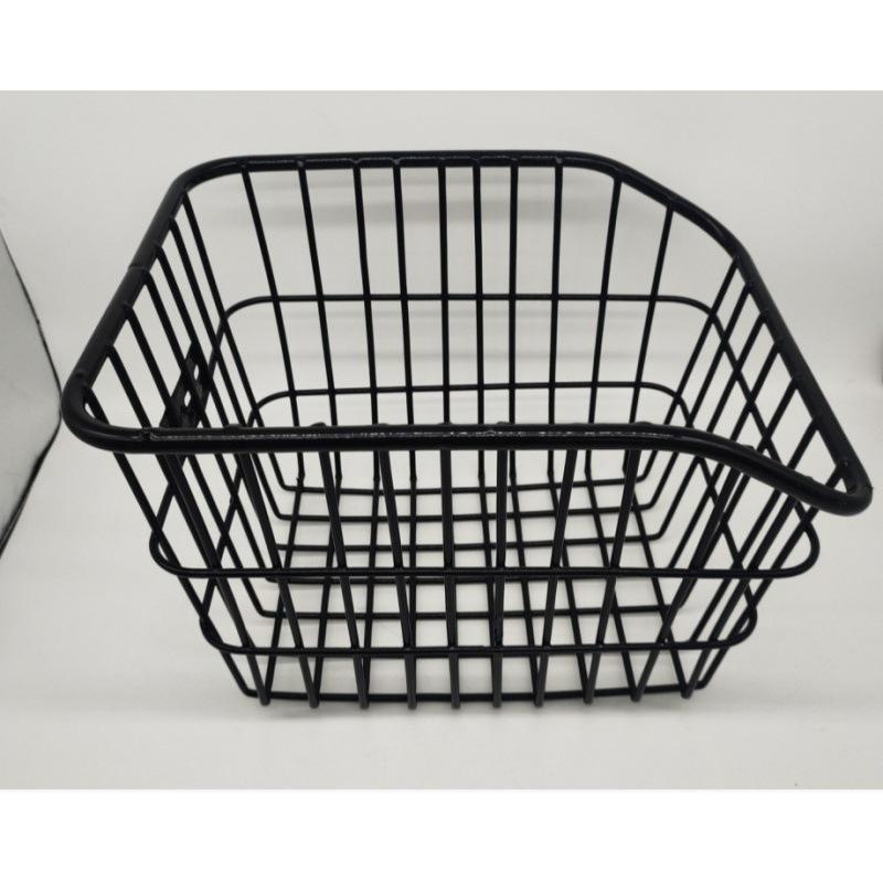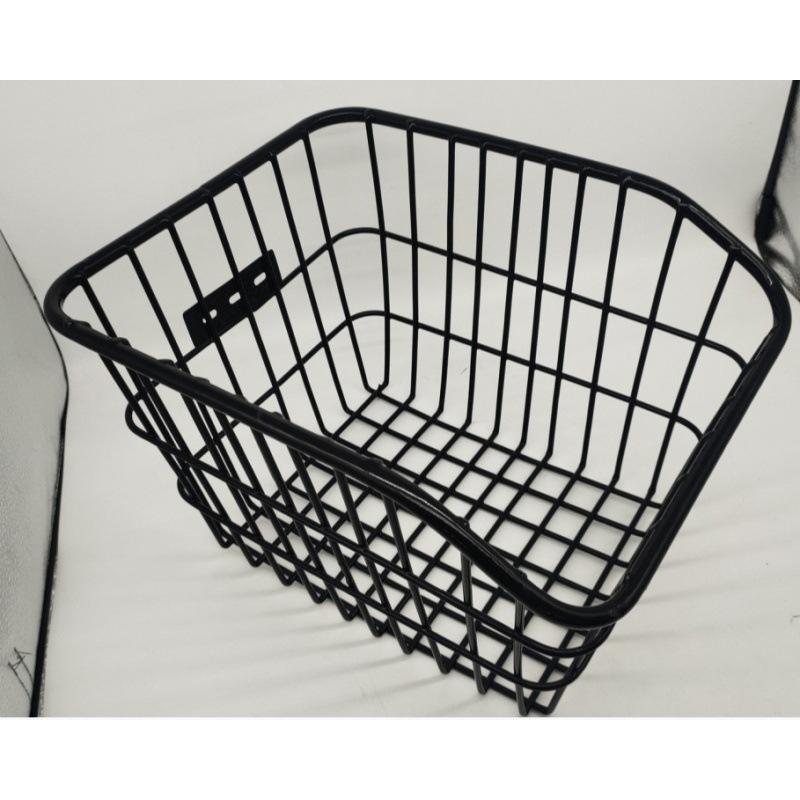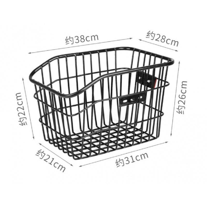 Cesta de bicicleta de metal negro, duradera, para niños y estudiantes, con accesorios reflectantes rojos