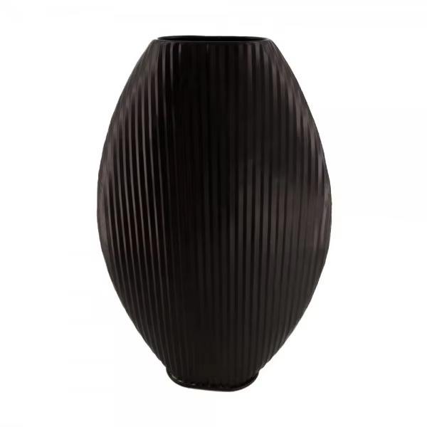 Jarrón de diseño de patrón lineal de Metal negro, acento decorativo elegante, perfecto para sala de estar, mesa de comedor y estilo moderno para el hogar