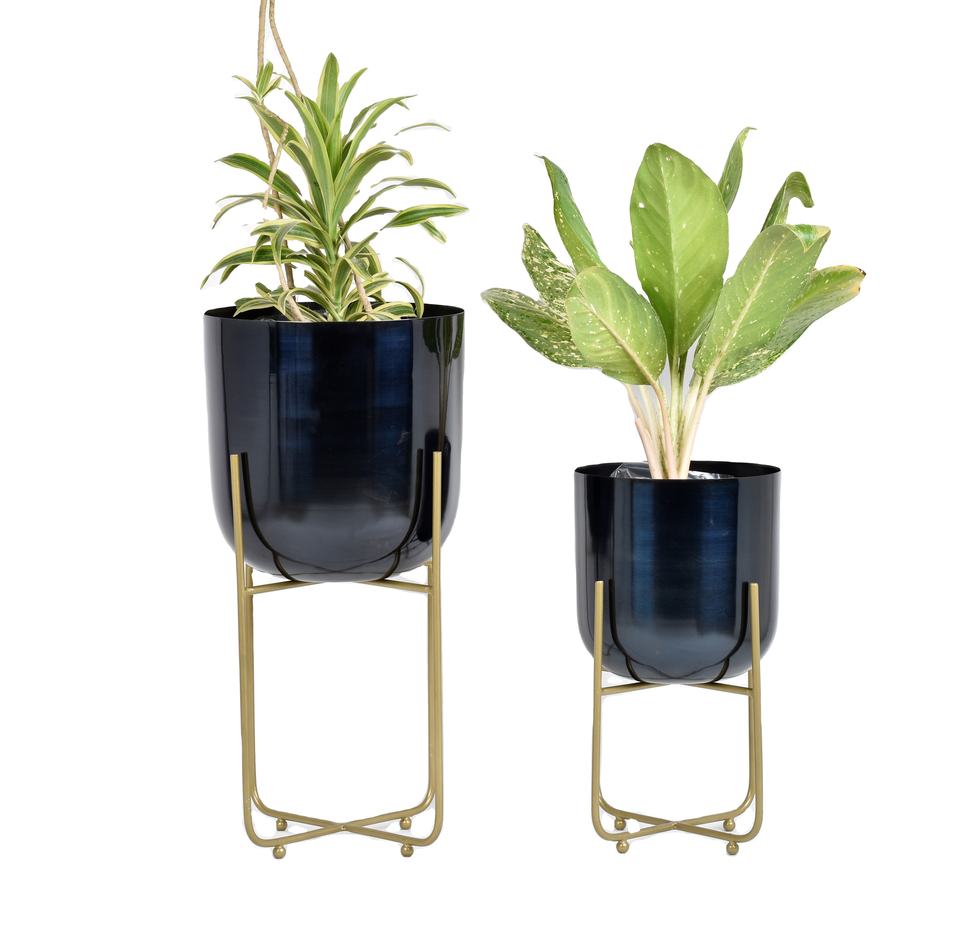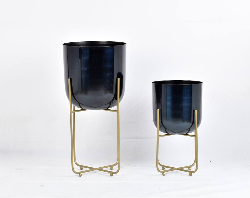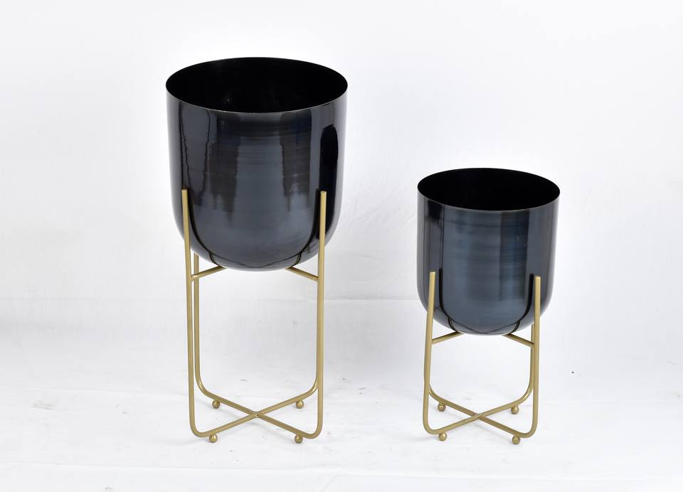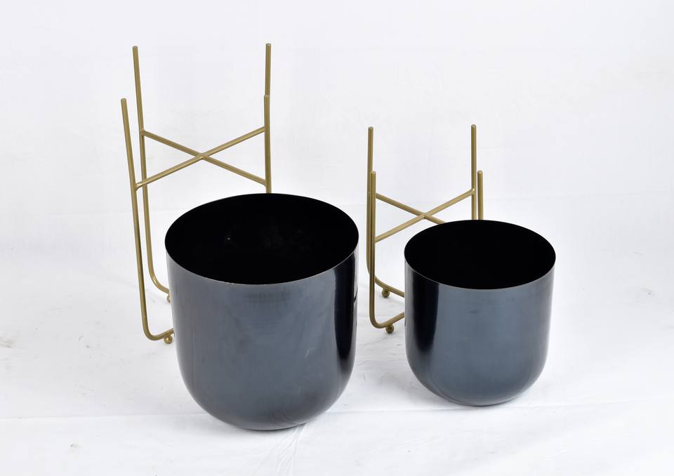 Macetas Minimalistas de Metal Negro, Soportes de Hierro con Acabado Dorado, Ecológicas, Ligeras, Logotipo Personalizado al por Mayor, Mejores Precios