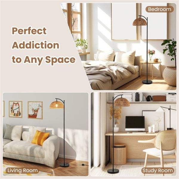 Lámpara de Pie de Metal Negro y Cuerda de Papel con Base Estable y Interruptor de Pedal de 8 Grados que Pasa la Prueba de Estabilidad