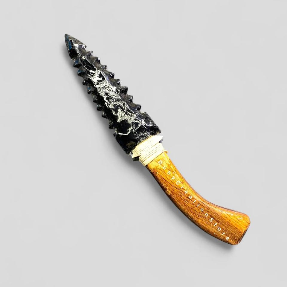Punta de Flecha de Obsidiana Negra Tallada a Mano, Punta de Lanza de Obsidiana Grande, Decoración de Piedras Preciosas Hechas a Mano, Pieza de Arte Tribal de Cristal