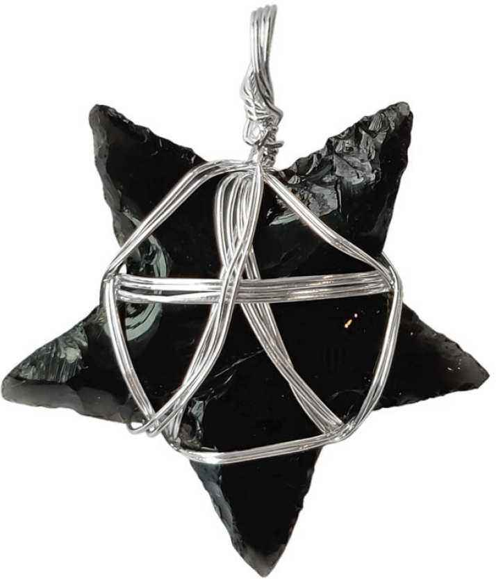 Negro obsidiana estrella forma amor estilo meditación piedra Natural cristal piedra preciosa alambre envoltura tallada grabado AAA grado Real Touch