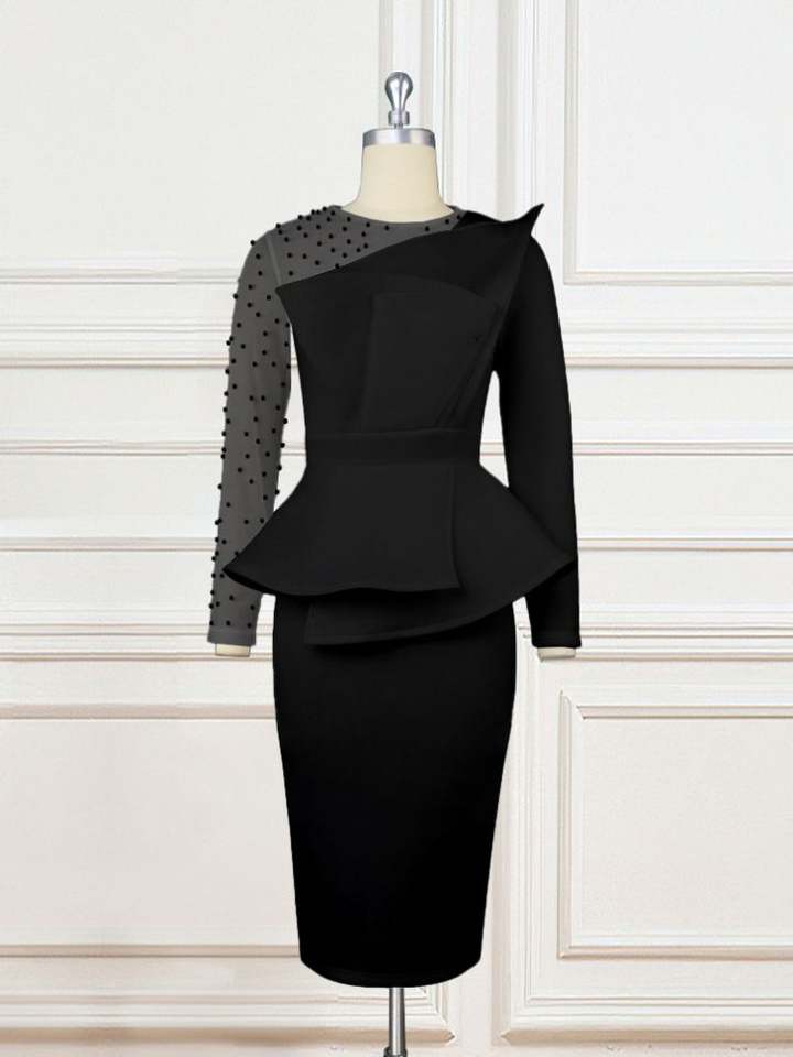 Vestidos Elegantes de Oficina para Mujer, Estilo Primavera, con Parches, Peplum, Adornados con Cuentas
