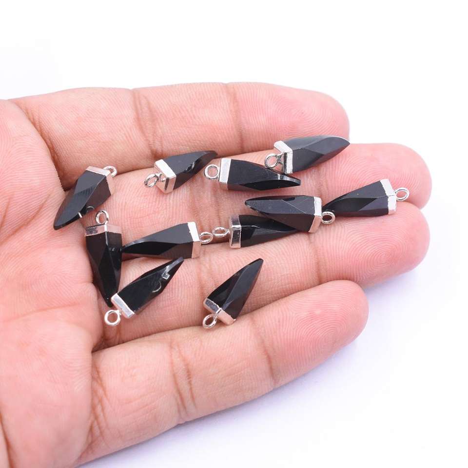Nombre del Producto:Onix negro de 19 a 21 mm con forma de cono de fianza, colgante plateado