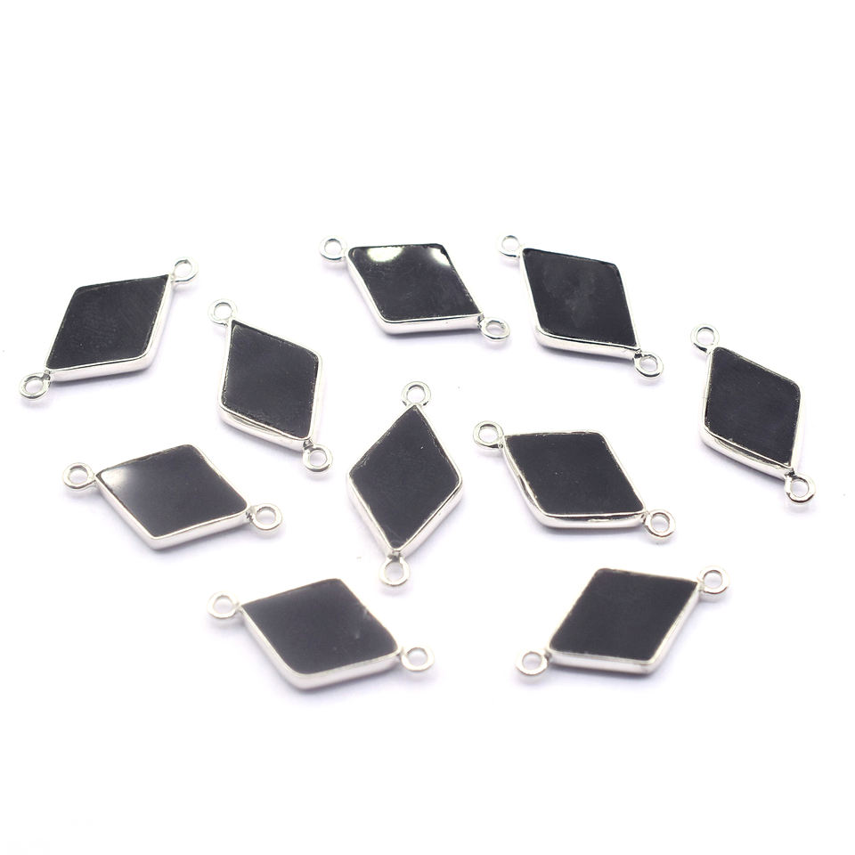 Nombre del Producto:Conector plateado con bisel plateado con forma de diamante de ónix negro
