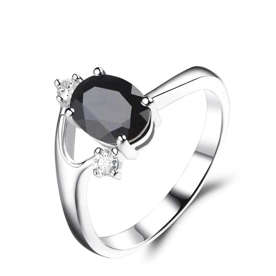 Anillo de Compromiso de Ónice Negro, Plata de Ley 925, Ónice Negro Natural, Piedra de Ónice Negra Cuadrada
