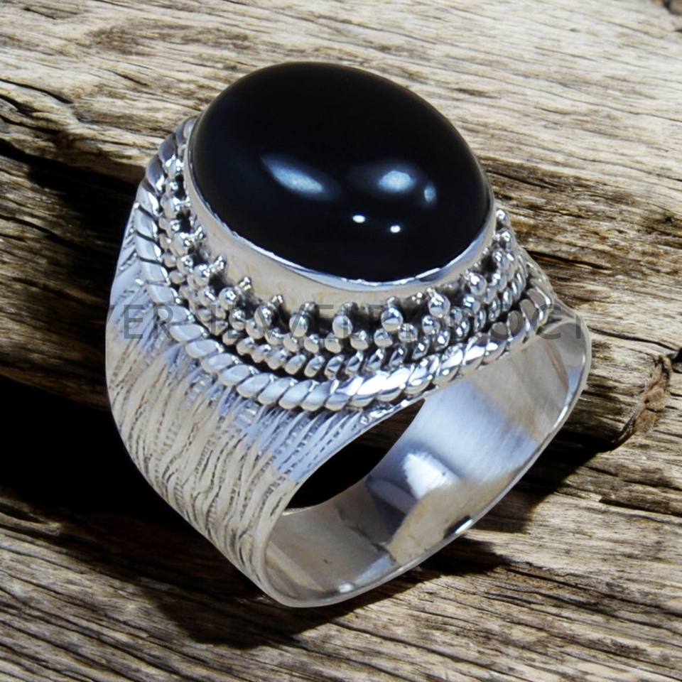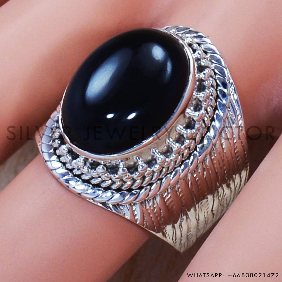 Anillo de ónix negro de corte ovalado de Plata de Ley 925 al por mayor, joyería de piedras preciosas naturales de primera calidad de estilo clásico audaz para boda o regalo