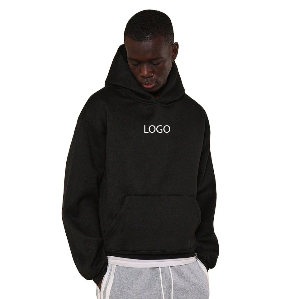 Unisex 100% algodón pulóver Sudadera con capucha negro de gran tamaño gota hombro holgado peso pesado grueso logotipo personalizado para invierno