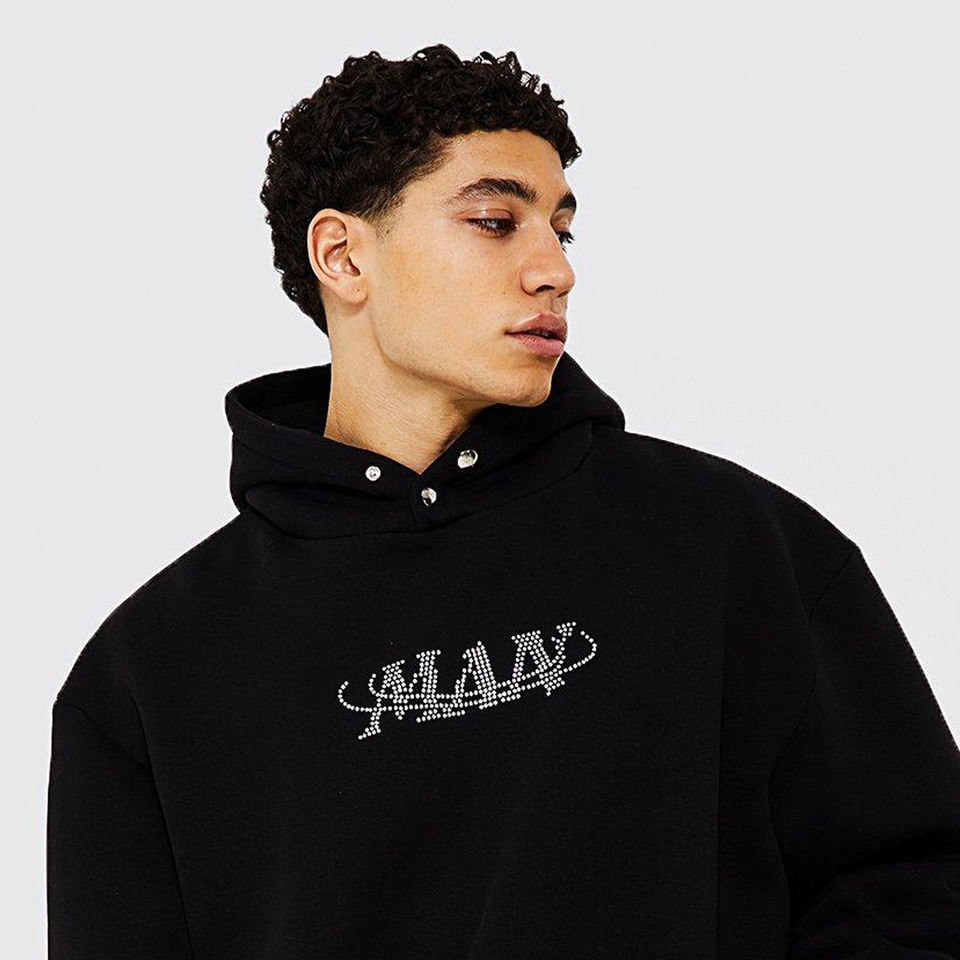 Sudadera con capucha negra de gran tamaño con estampado de logotipo de diamantes de imitación ropa de calle Unisex suéter de algodón pesado Hip Hop moda invierno sudaderas con capucha venta