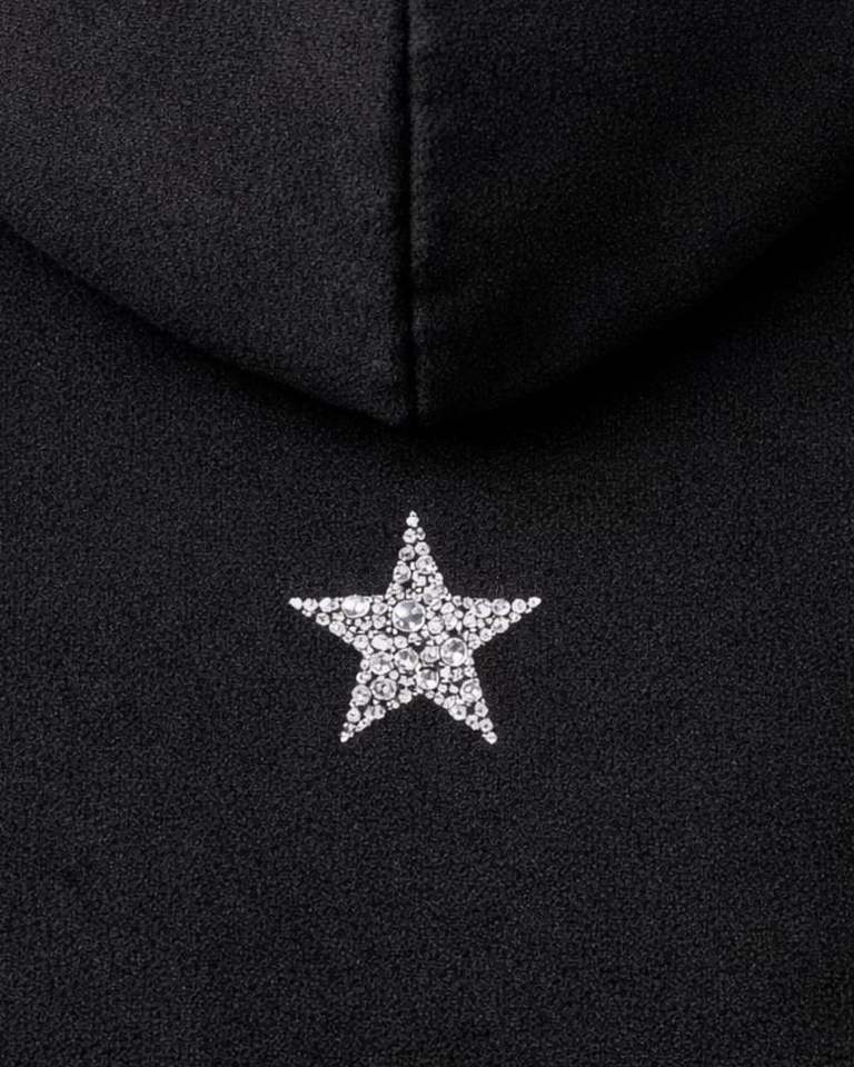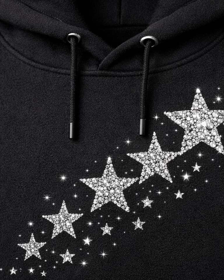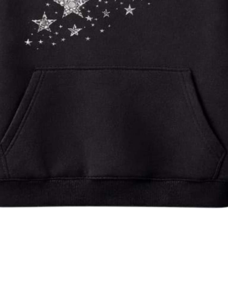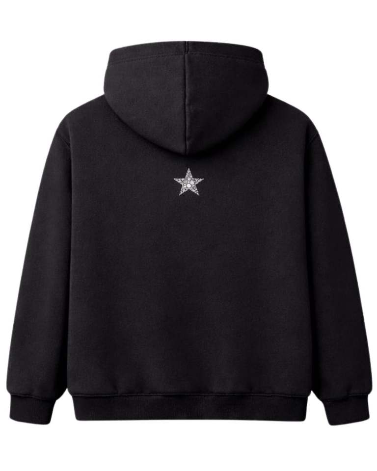 Sudadera con capucha negra extragrande con estrella de pedrería, de forro polar grueso, con bolsillo canguro, estilo urbano, fabricante personalizado, para hombre