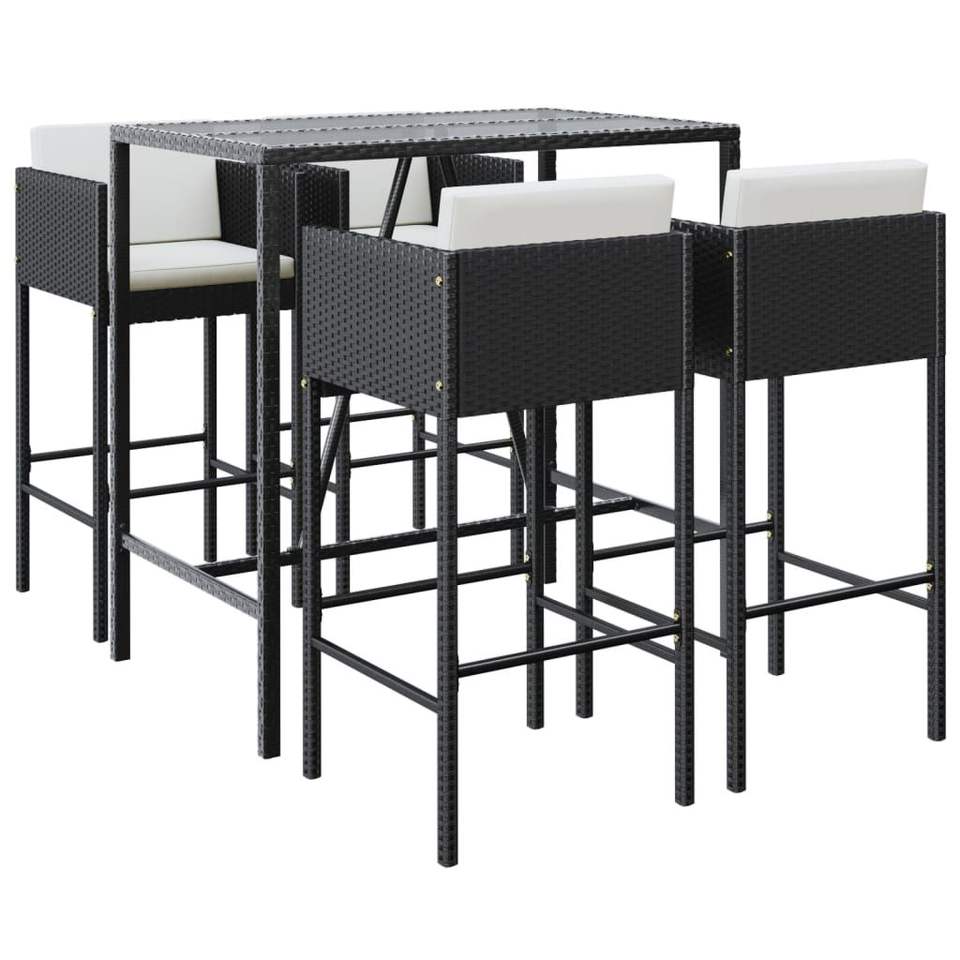 Conjunto de Bar de Jardín de Ratán PE Negro con Reposapiés Estándar, Colección de Muebles Duraderos para Exteriores