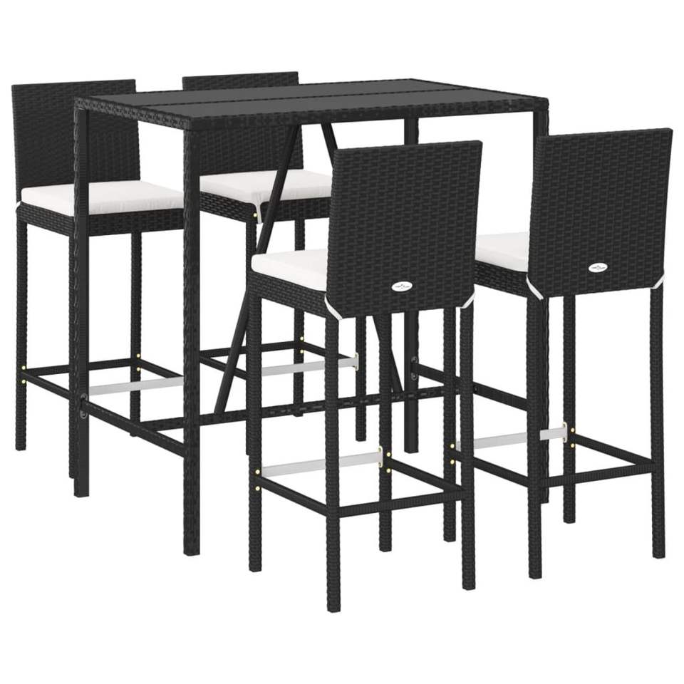 Conjunto de Bar de Jardín de Ratán PE Negro con Elementos de Acero con Recubrimiento en Polvo y Vidrio Templado