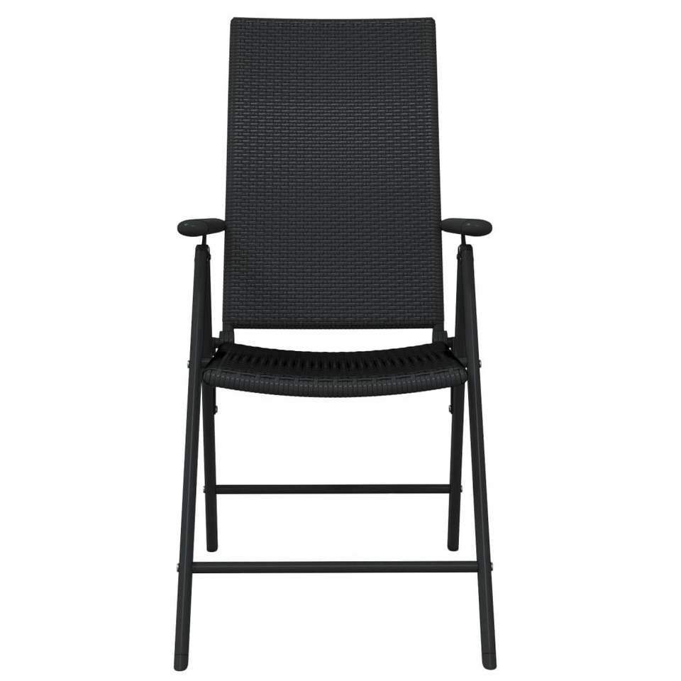 Conjunto de Comedor de Jardín de Ratán PE Negro, 4 Plazas, Plegable, Muebles de Exterior de Estilo Contemporáneo
