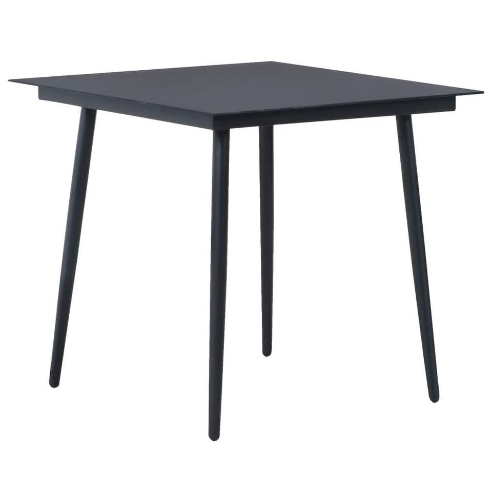 Juego de Comedor de Ratán de PVC Negro y Acero con Recubrimiento en Polvo y Vidrio para Jardín, Muebles de Exterior