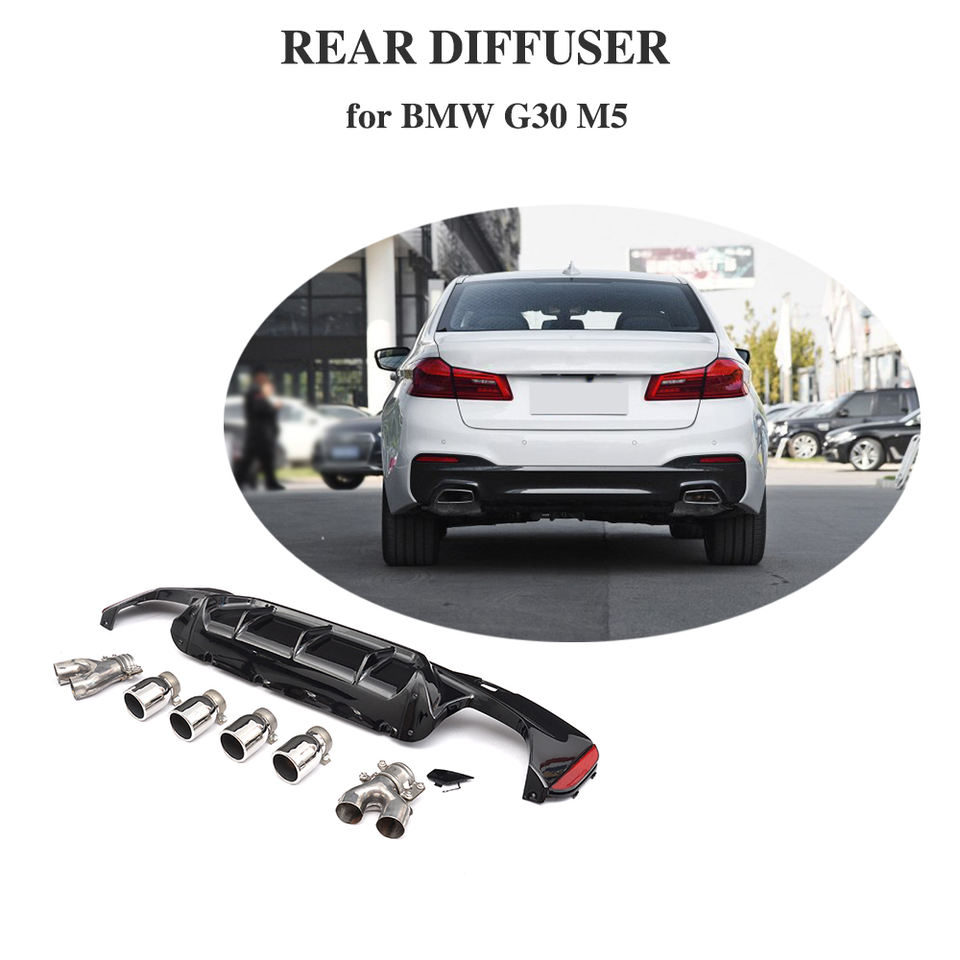 Pintado de negro M5 estilo G30 difusor trasero con escape para BMW G30 G38 deporte 2017-2019