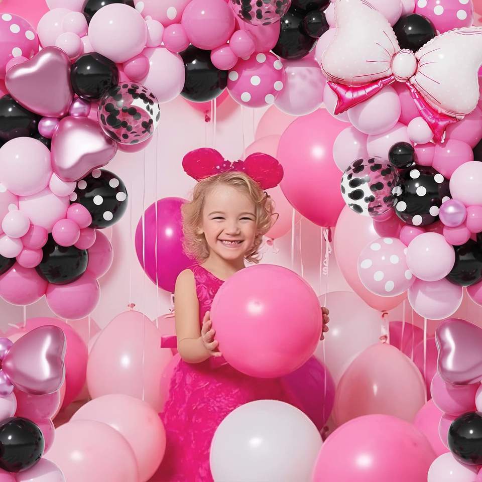 Negro Rosa onda punto tema ratón látex globo guirnalda arco Kit lazo rosa para niñas decoración de fiesta de cumpleaños