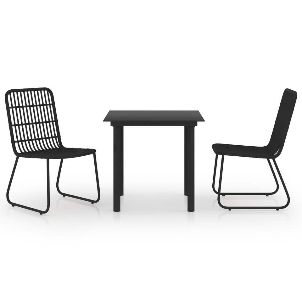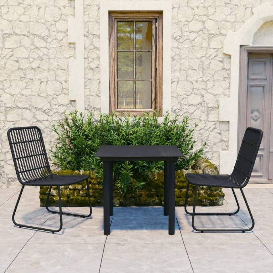 Juego de Comedor de Ratán Sintético Negro con Acero con Recubrimiento en Polvo y Vidrio Templado para Uso en Jardín
