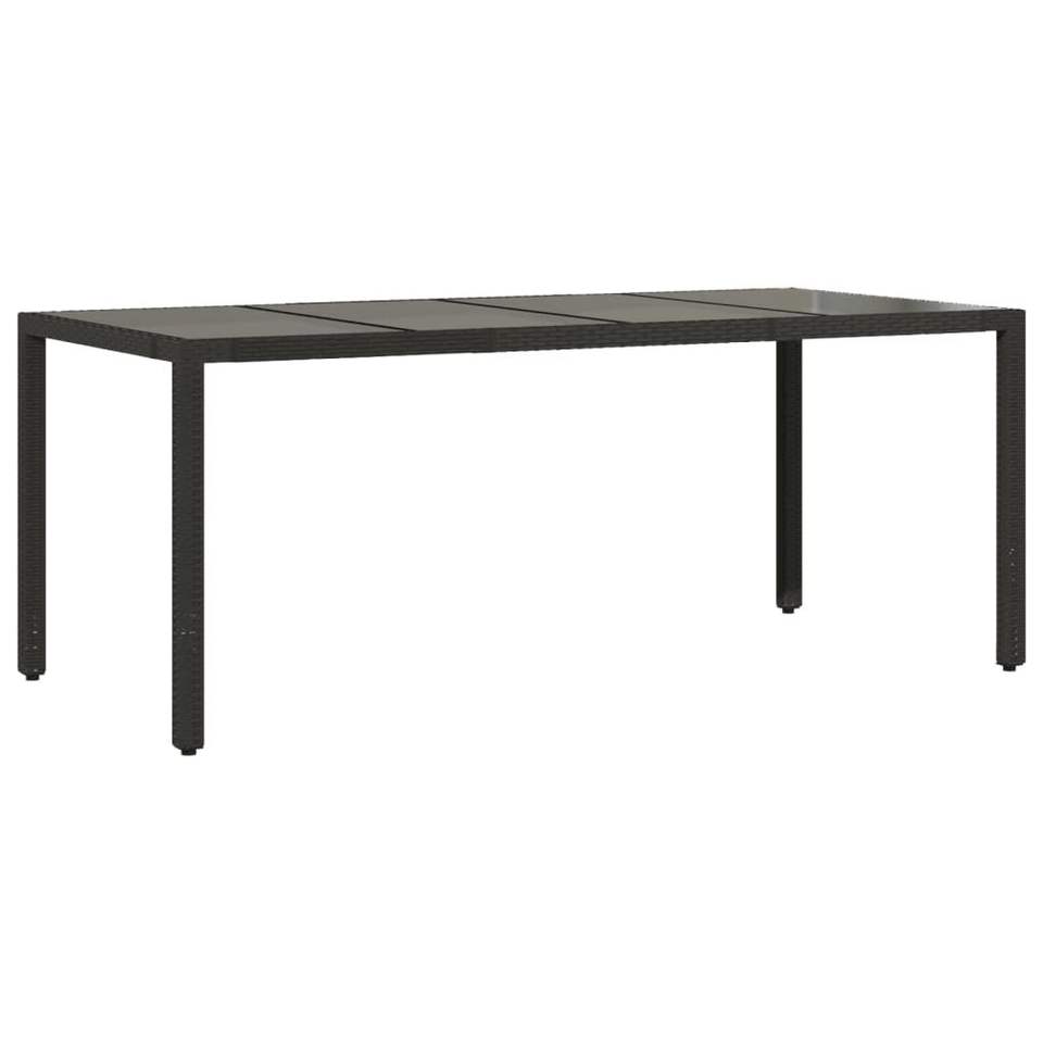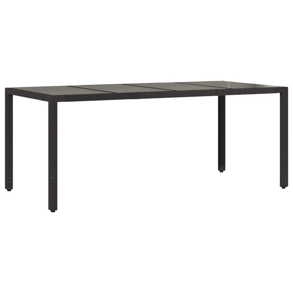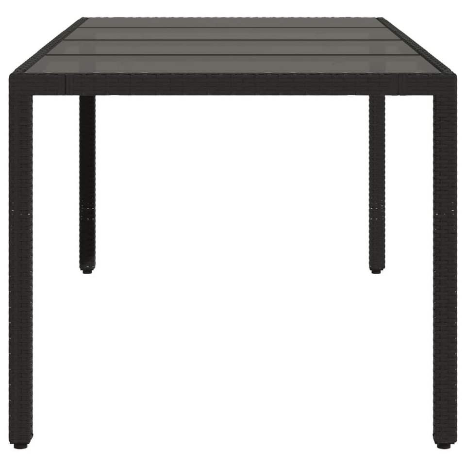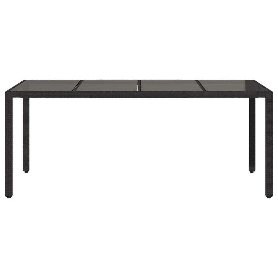 Mesa de Jardín de Ratán Sintético Negro con Acero con Recubrimiento en Polvo y Vidrio Templado, Muebles de Patio Duraderos