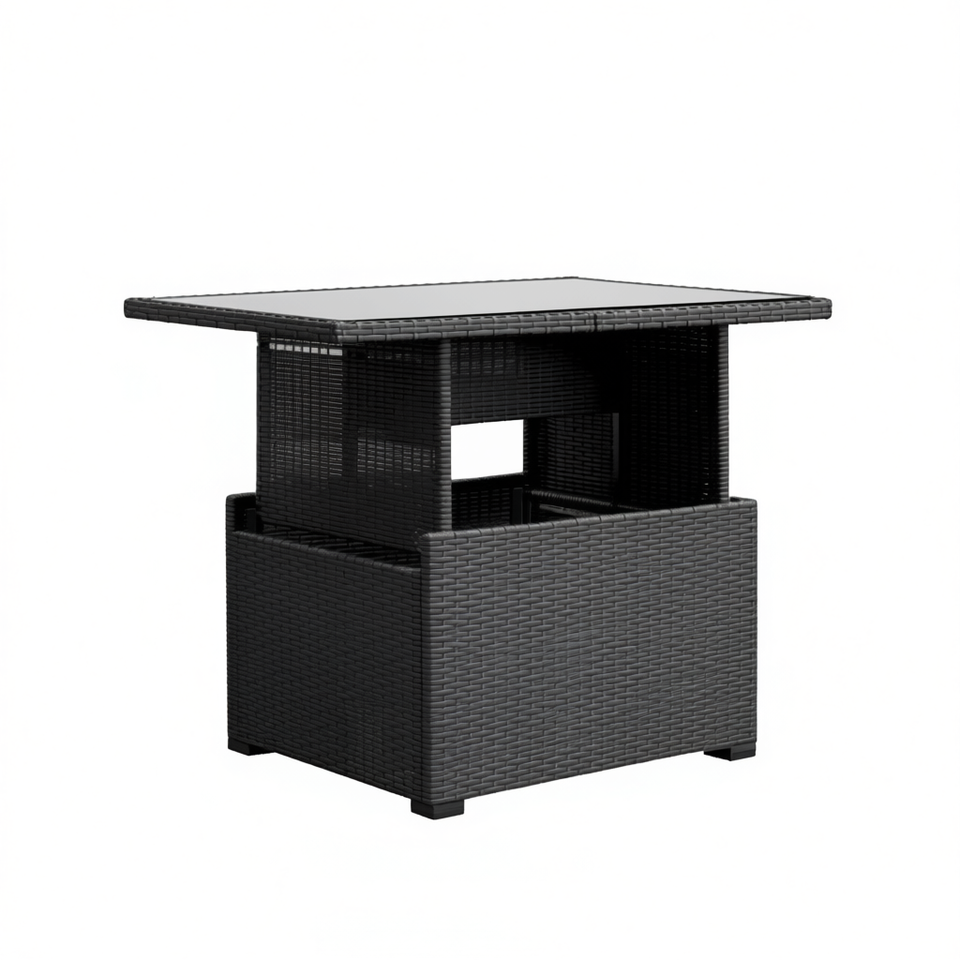 Mesa de Exterior de Ratán Sintético Negro con Cubierta de Vidrio Templado, Estructura de Acero, Diseño Moderno, Muebles de Jardín