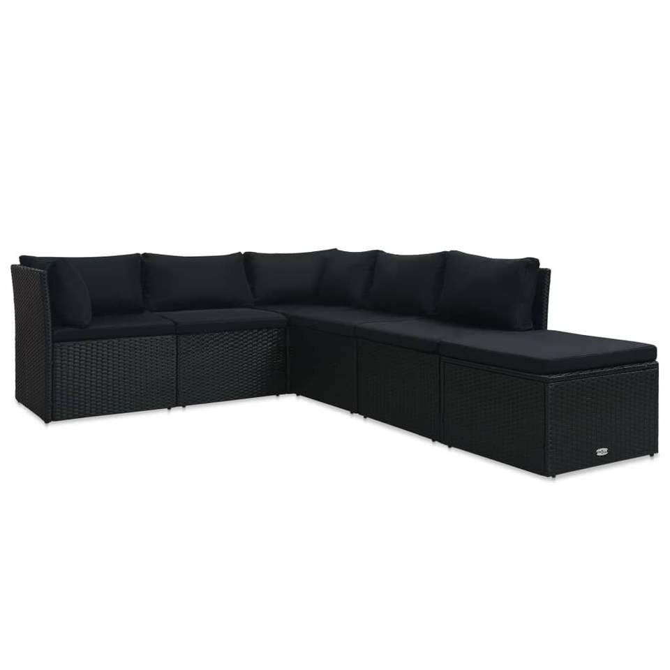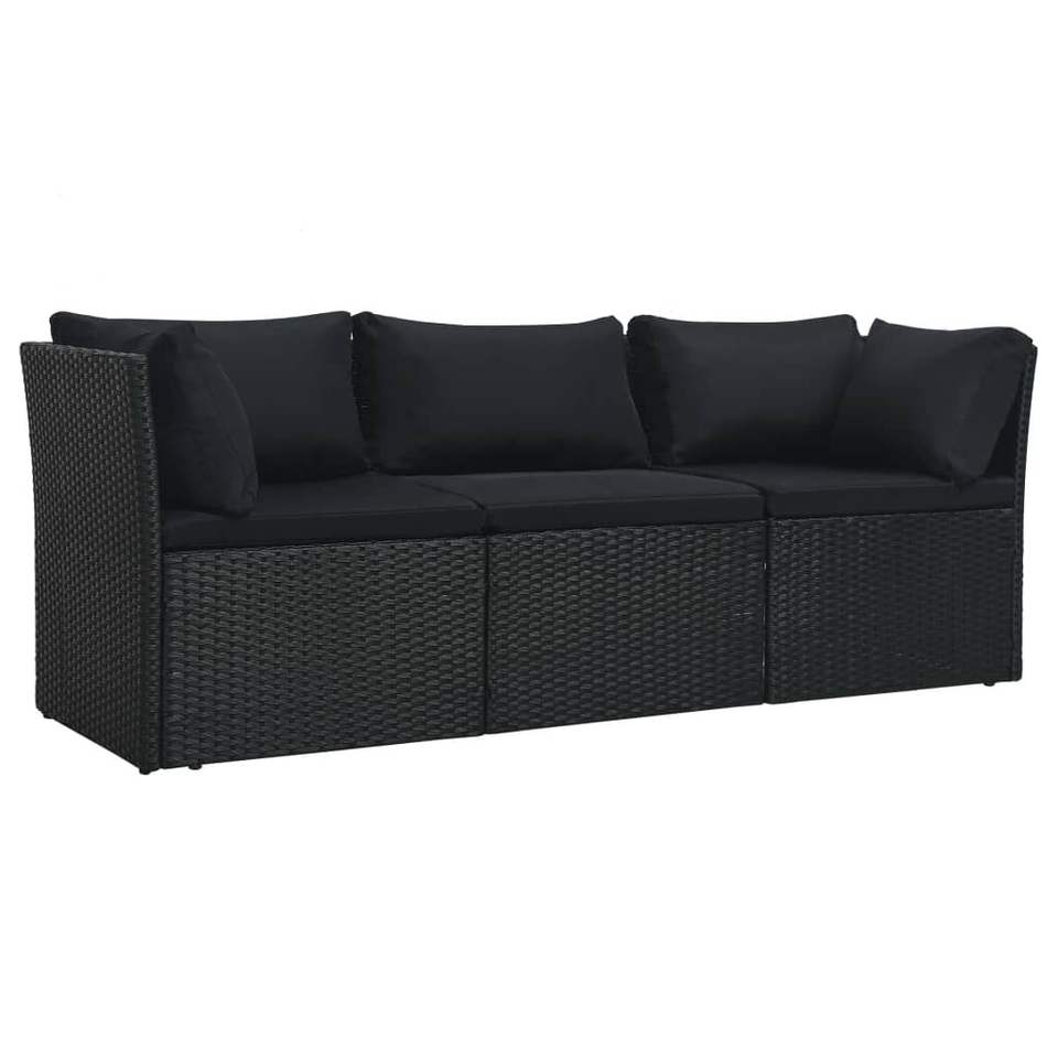 Conjunto de sofás de jardín estándar de poliratán negro y acero con recubrimiento en polvo