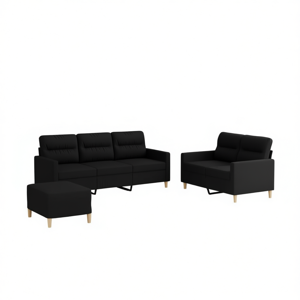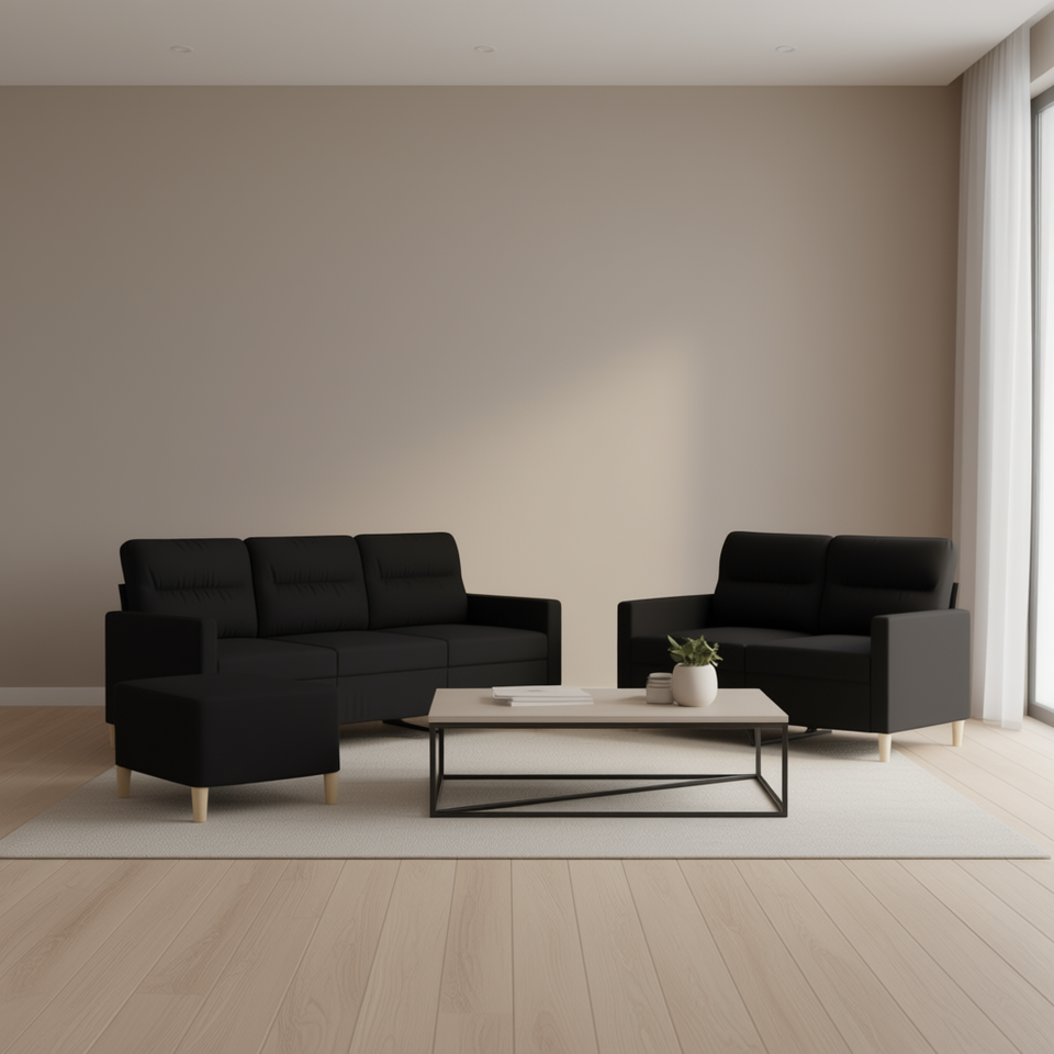 Juego de sofás de poliéster negro con estructura de metal, muebles modernos para sala de estar