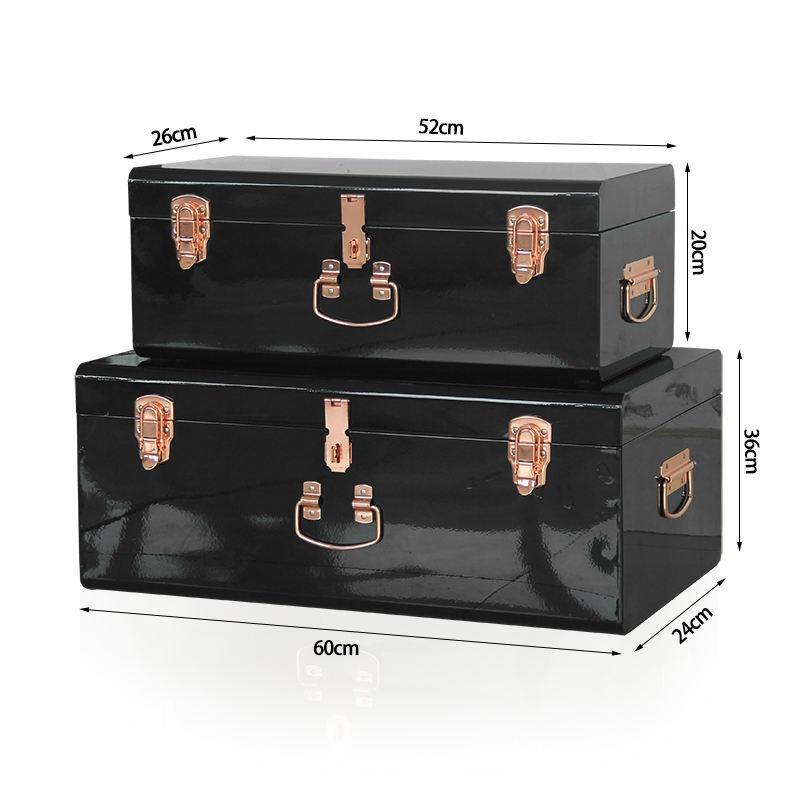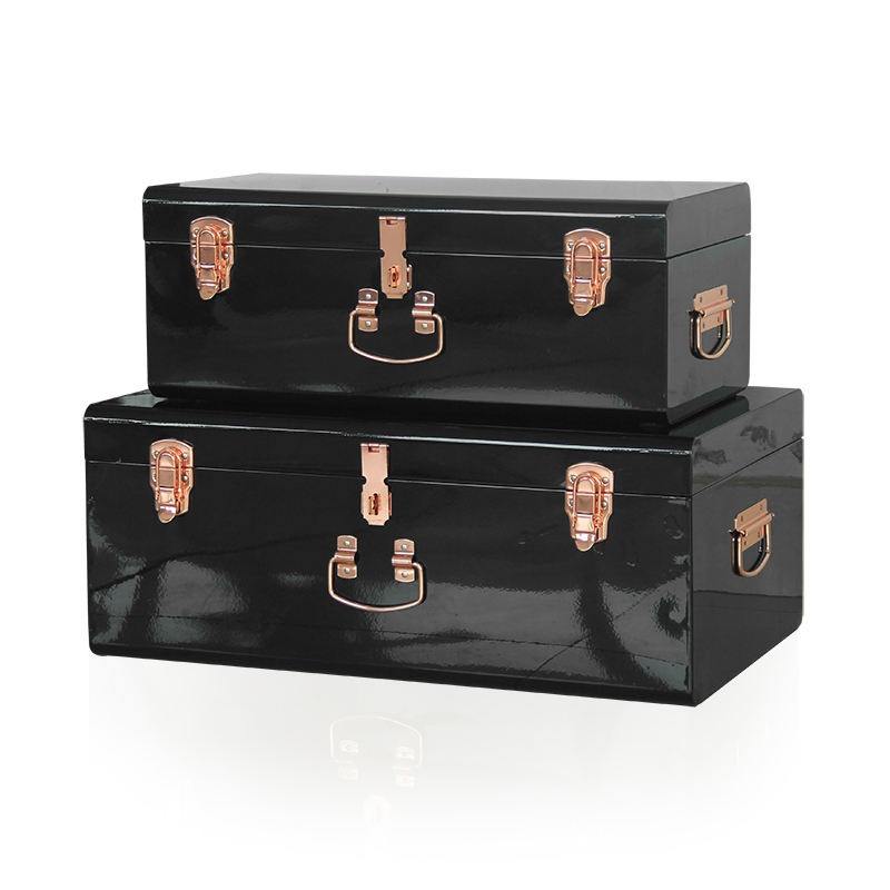Juego de Baúles de Almacenamiento de Acero con Recubrimiento de Polvo Negro con Cerradura