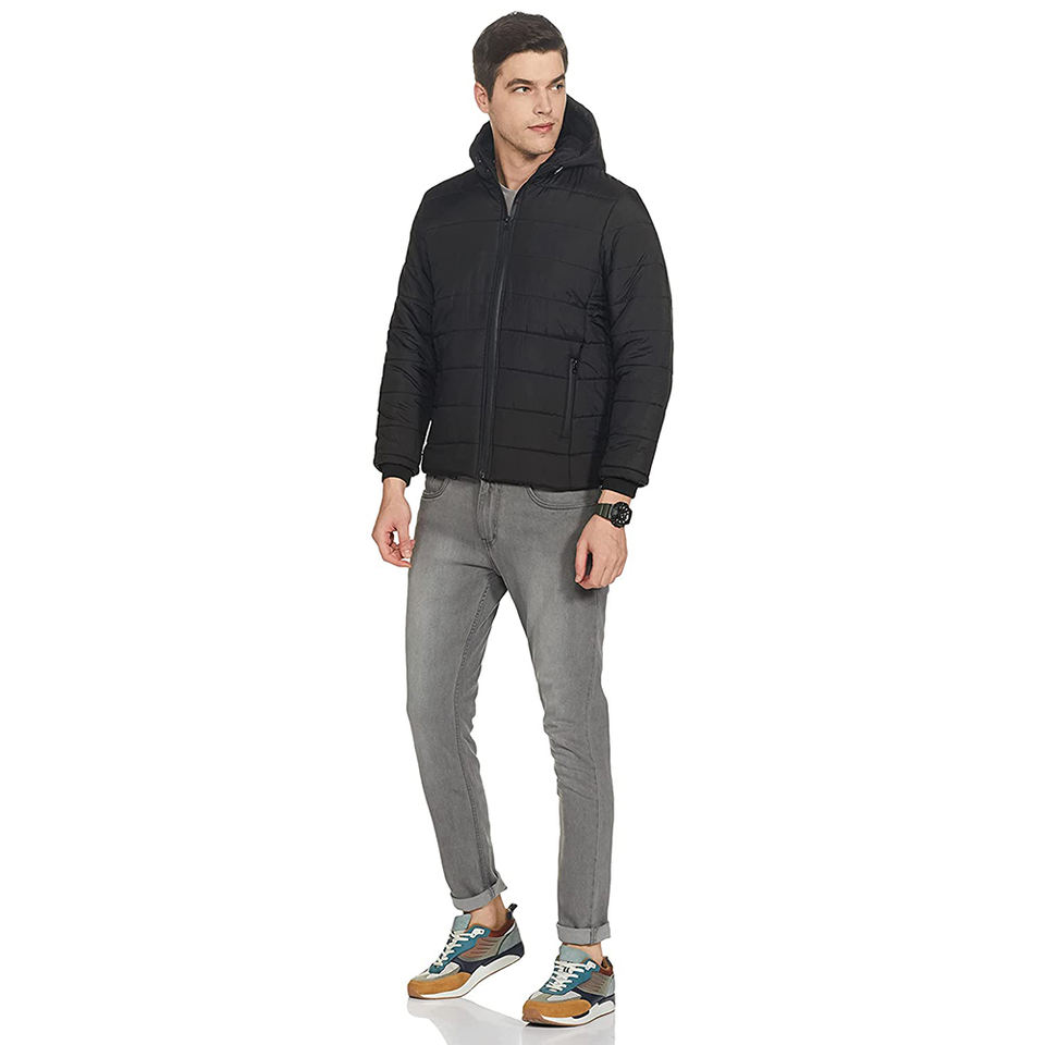 Chaquetas acolchadas negras para caballeros Tallas grandes Cierre de cremallera Estilo personalizado Precio al por mayor Chaquetas de precio barato