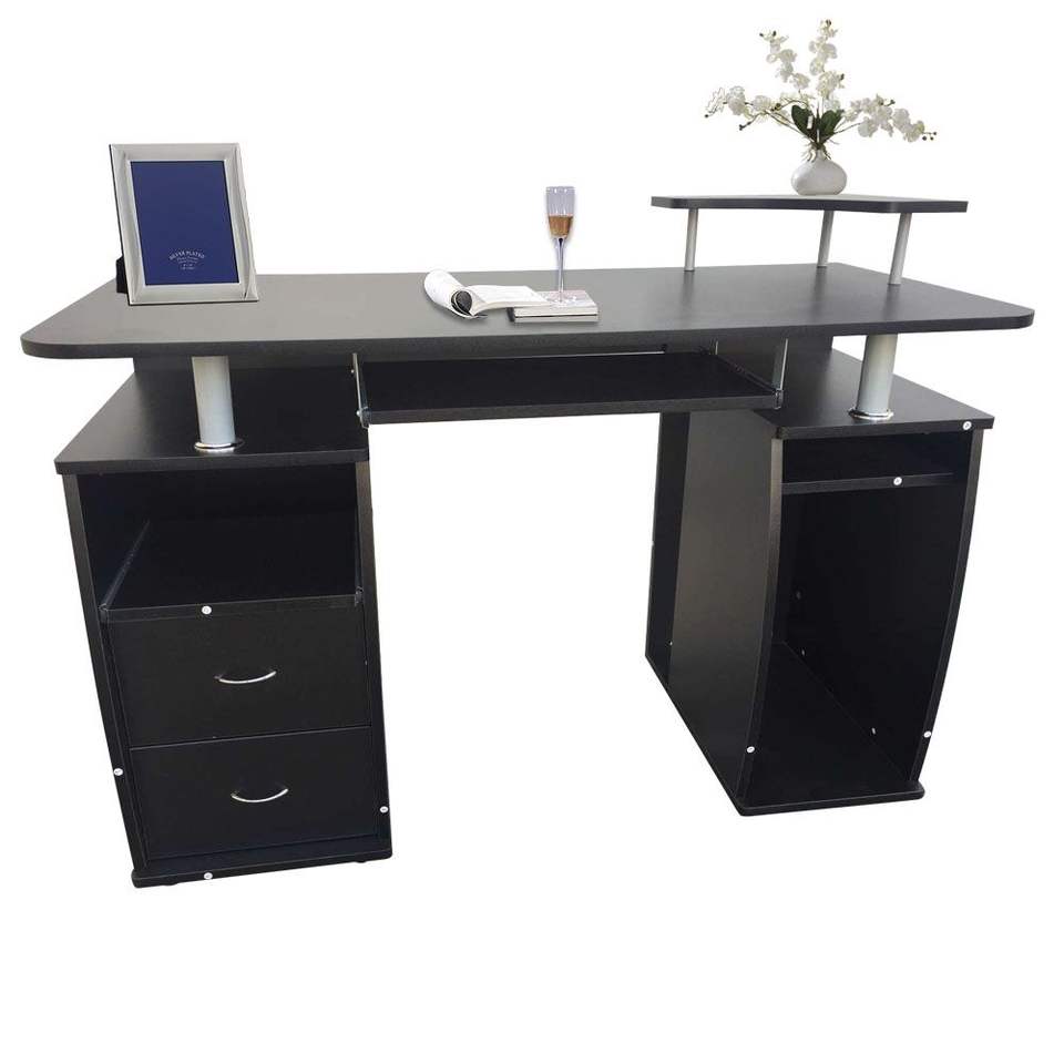 Escritorio de Computadora con Tablero de Melamina Integrado Negro RT con Cajones