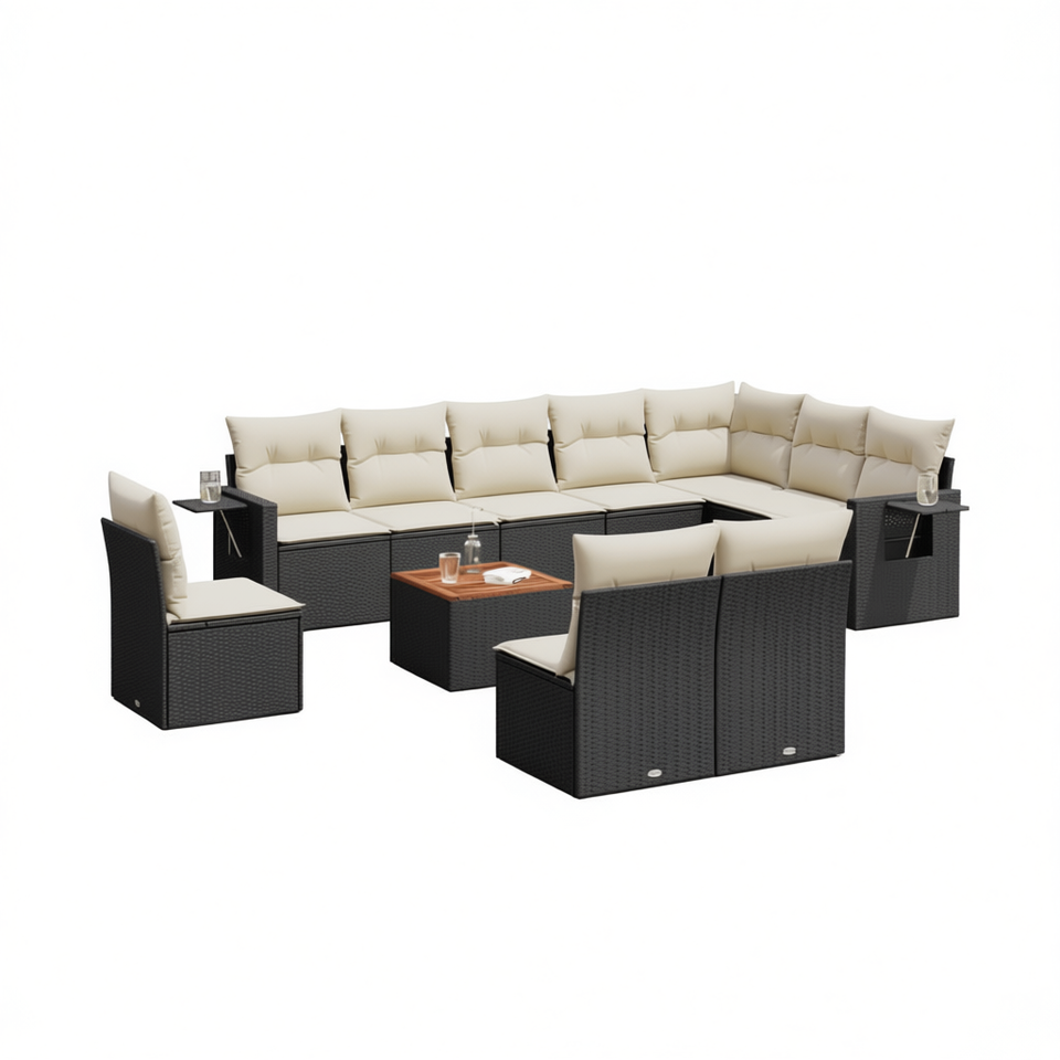 Conjunto de Sofá de Jardín de Ratán Negro con Cojines Crema, Muebles de Exterior de Diseño Contemporáneo, Mimbre de PE Resistente al Agua y a los Rayos UV