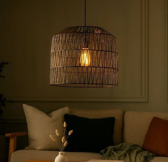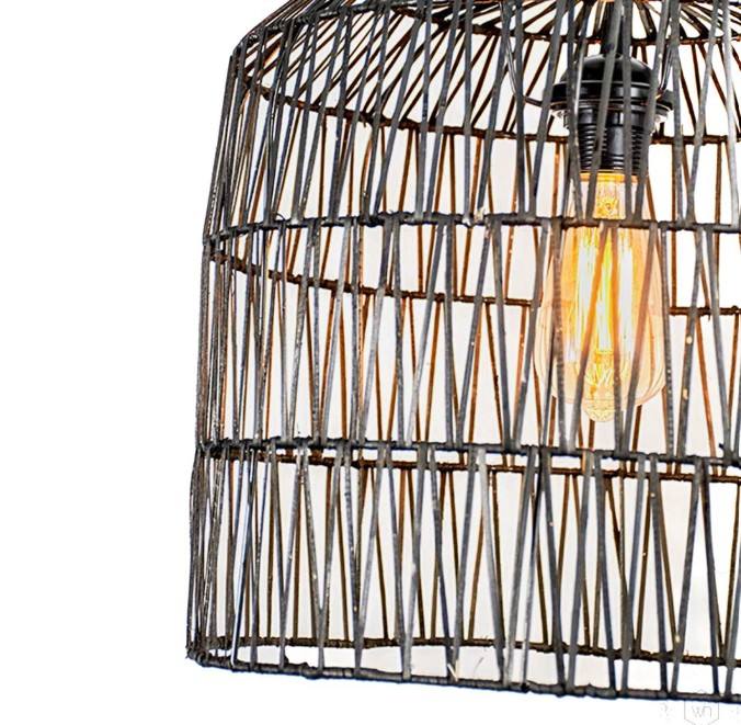 Lámpara Colgante LED de Ratán Negro | Bombilla E27 | Jaula Tejida Colgante para Uso en Hoteles | Lámpara de Techo Moderna de Estilo Industrial Bohemio