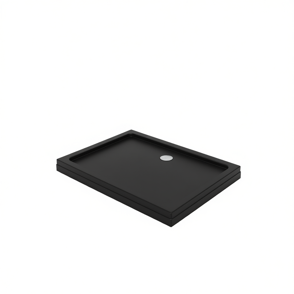 Base de Ducha Rectangular Negra de ABS de 27.6 x 35.4 Pulgadas con Drenaje Central, Diseño Minimalista, Instalación en el Suelo