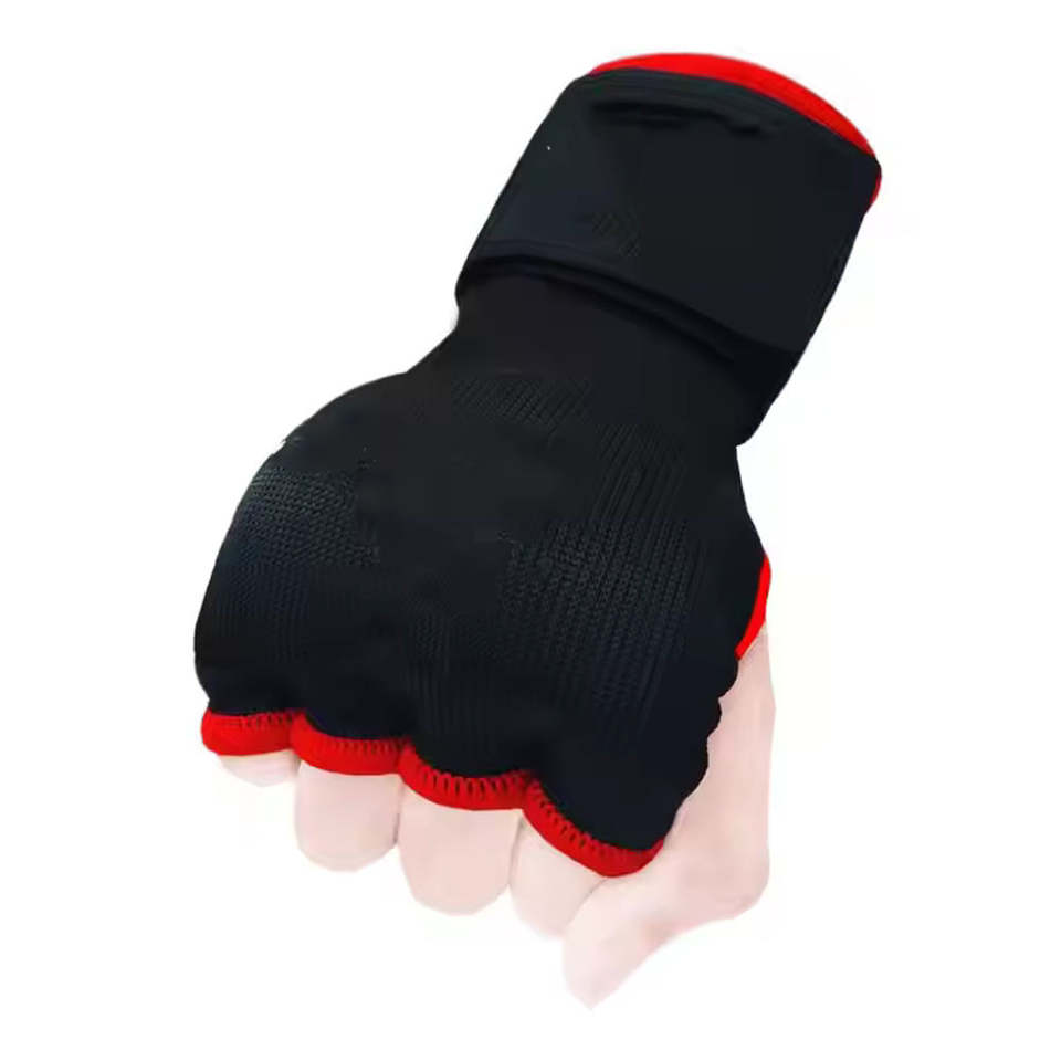 Guantes Interiores de Boxeo de Cuero Rojo y Negro, con Dedos Descubiertos, Acolchados, con Soporte para Muñeca, Logotipo Personalizado, Equipo de Entrenamiento