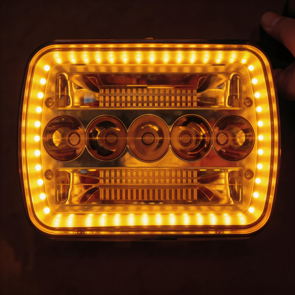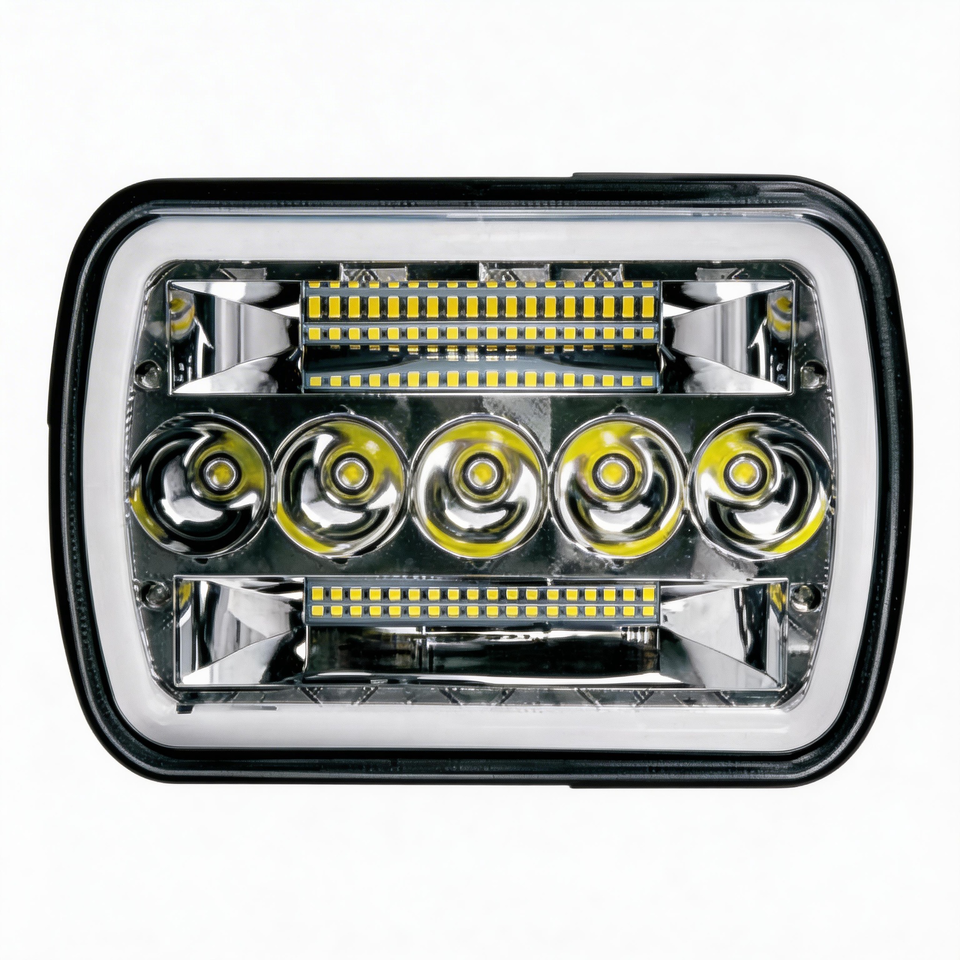 Luz de Conducción LED con Lente Reflector Negra de 7 Pulgadas, Enchufe H4, para Camión, Tractor, Automóvil, Luz de Trabajo LED Cuadrada de 5x7 Pulgadas, 75W, 6000K, 2 Años de Garantía