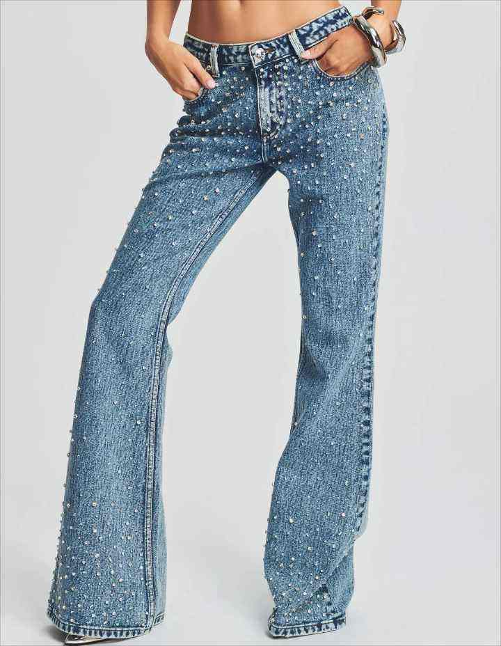 Pantalones Vaqueros Negros con Pedrería, Estilo Urbano, Corte Holgado, Brillantes, Jeans de Moda para Hombre, Casuales, Pierna Ancha, Personalizados, al por Mayor