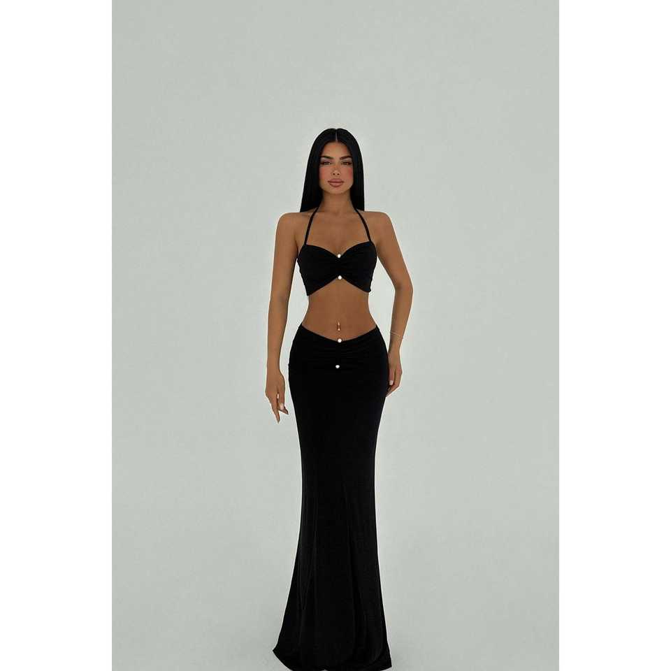 Traje Negro Romy con Decoración de Botones, Estilo Formal y Casual para el Verano