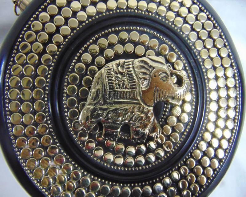 Bolso de mano negro y redondo de resina para mujer, bandolera, bolso de mano indio