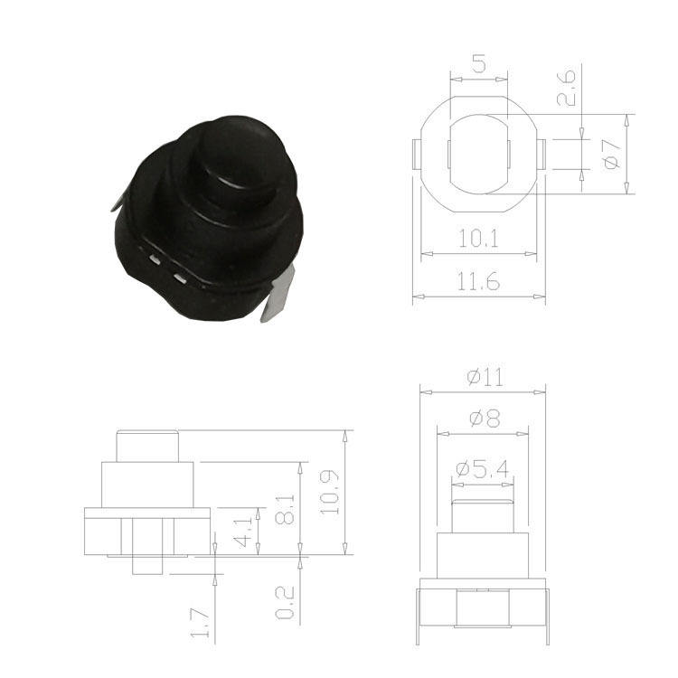Interruptor Lateral Redondo Negro 1010-X, Interruptor Central ON-OFF para Cuerpo de Linterna, Interruptor de Encendido Electrónico SPST