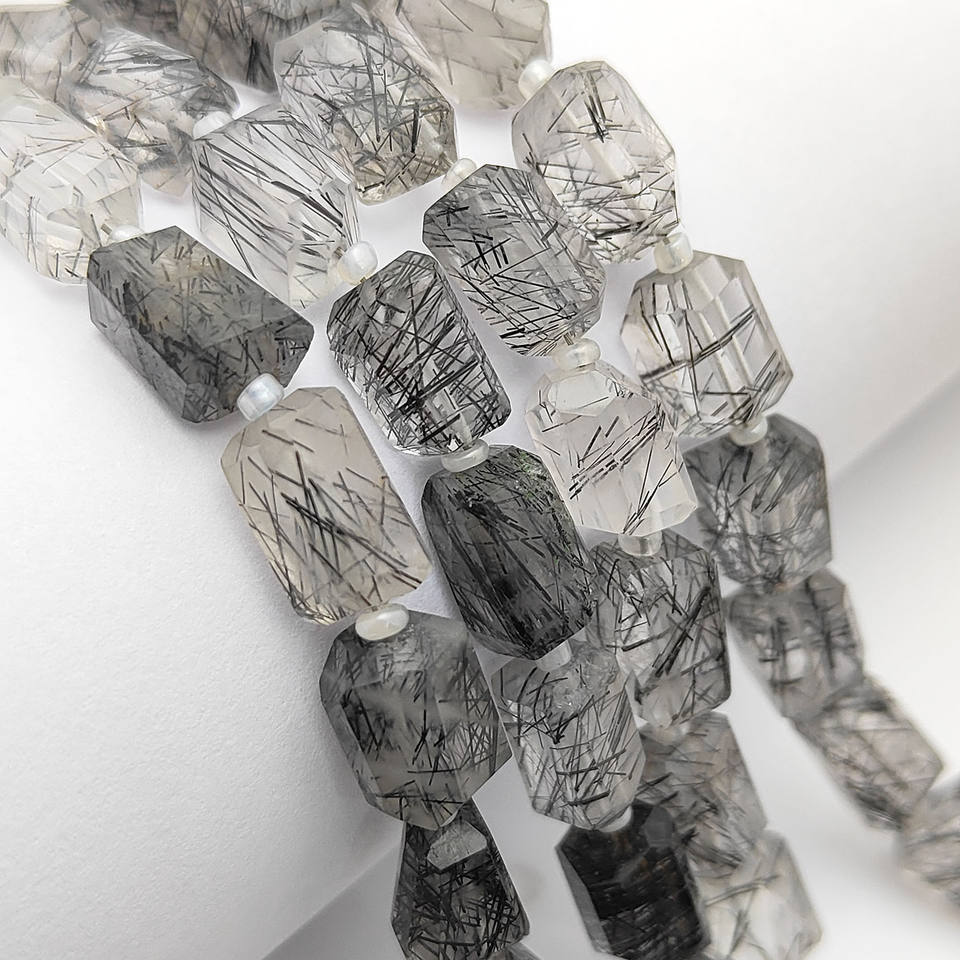 Hebras de cuentas de pepitas facetadas de piedras preciosas de Cuarzo rutilado negro natural