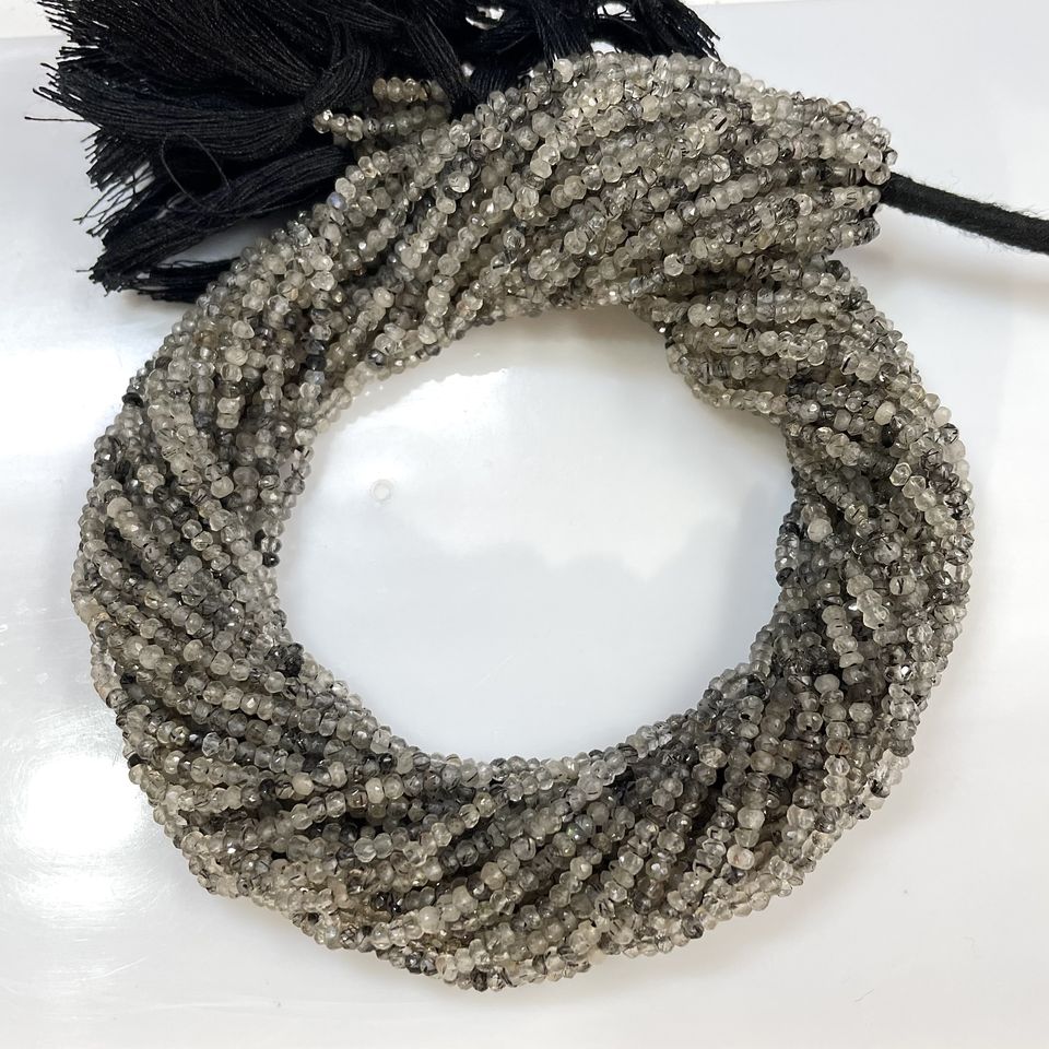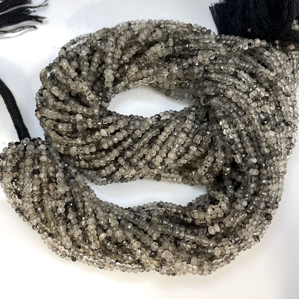 Cuentas de forma de Rondelle facetadas de rutilo negro, cuentas al por mayor de rutilo Natural de buena calidad para la fabricación de joyas