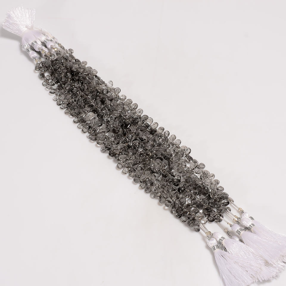 Cuentas en forma de pera de cuarzo rutilo negro, piedras preciosas de cuarzo rutilo negro, cuentas Lisas para hacer joyas, cuentas de piedras preciosas naturales, 8 pulgadas