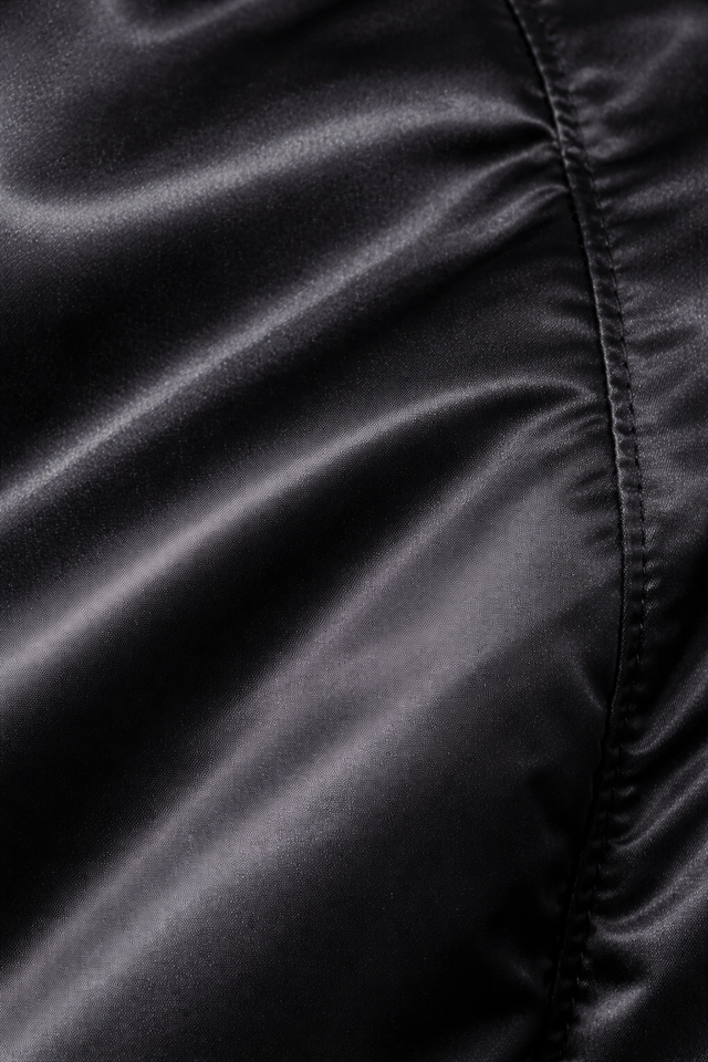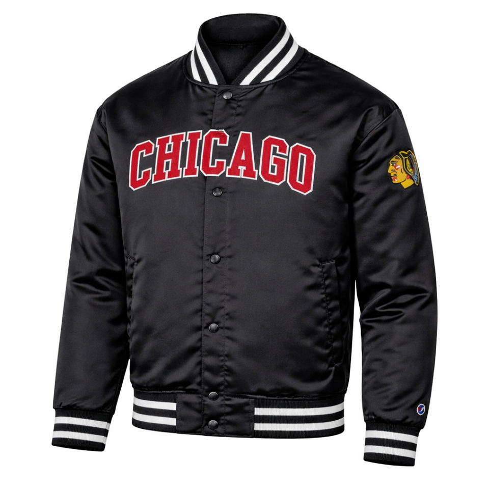 Chaqueta Varsity Negra de Satén con Estampado de Letras en la Parte Delantera, Botones a Presión, Diseño Casual Simple, Ligera y Transpirable, con Cierre de Cremallera