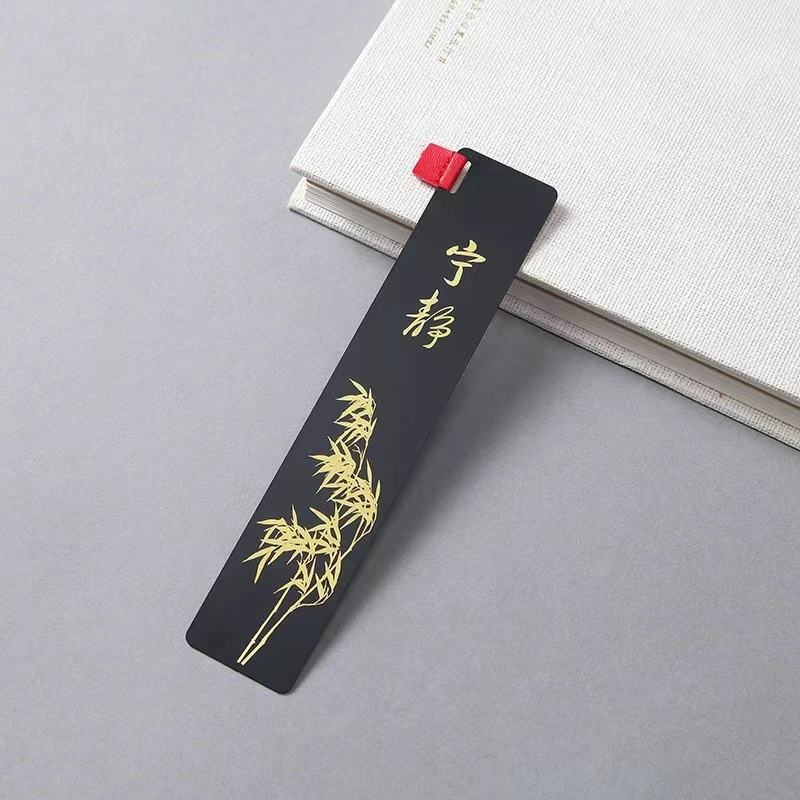 Marcapáginas de tamaño personalizado con patrón de dibujos animados ecológico de metal dorado plateado negro a granel