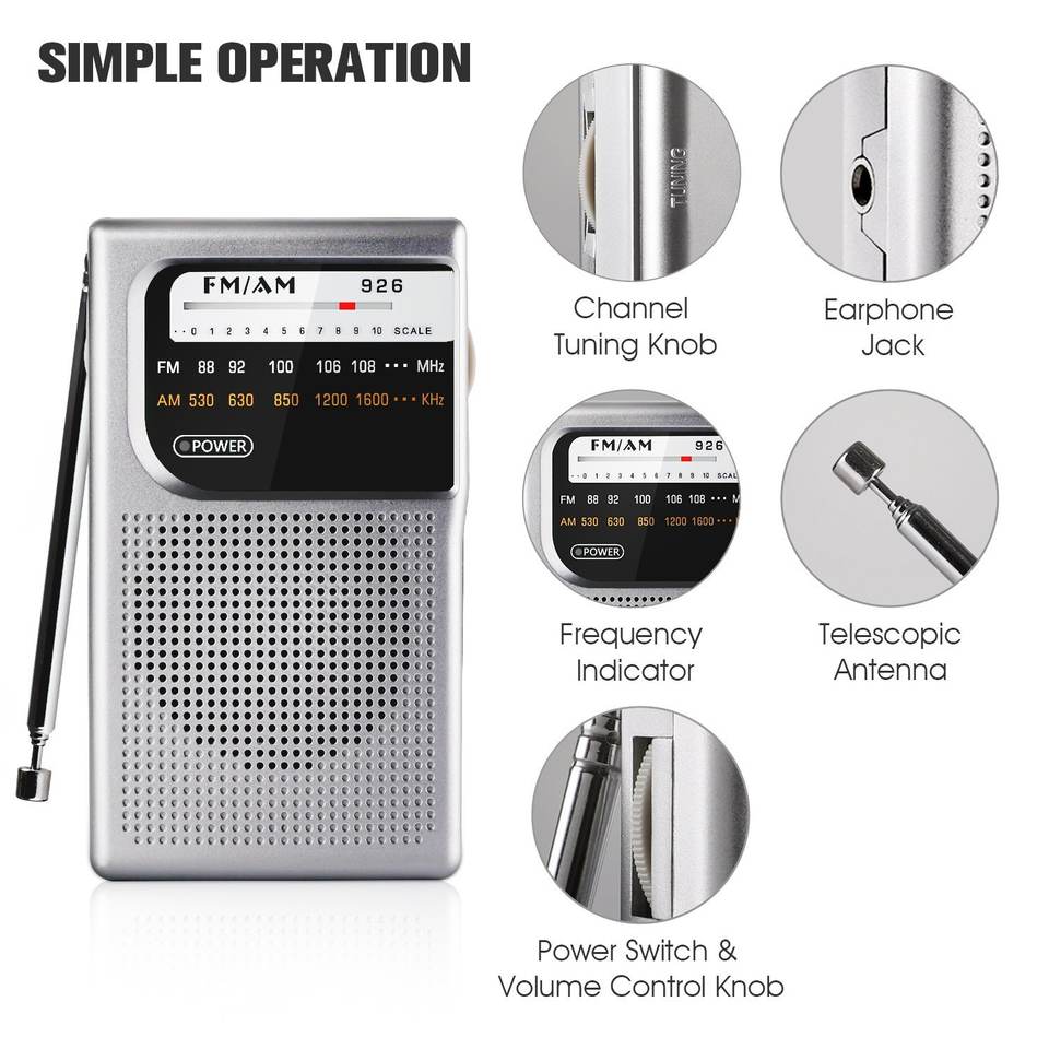 Radio FM Portátil de Bolsillo Pequeño, Inalámbrico, Personalizado, de Frecuencia Fija, Negro y Plateado