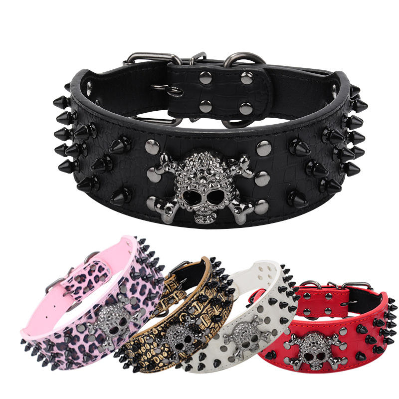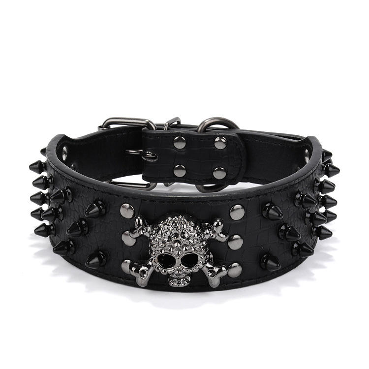 Collares para mascotas de estilo Punk con remaches de calavera negra para perros medianos y grandes, collares para perros antimordeduras de cuero PU