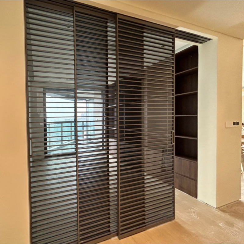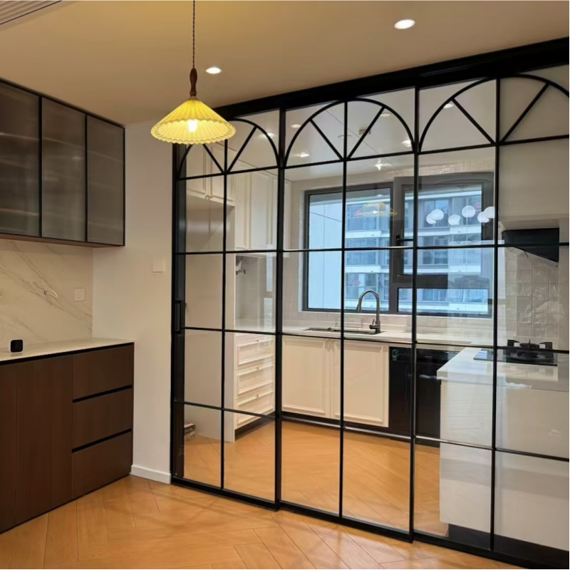 Puerta Corredera de Cierre Suave con Marco Delgado Negro para el Hogar, Sala de Estar, Interior, Dormitorio, Cocina, Puerta Corredera de Vidrio y Aluminio para Balcón